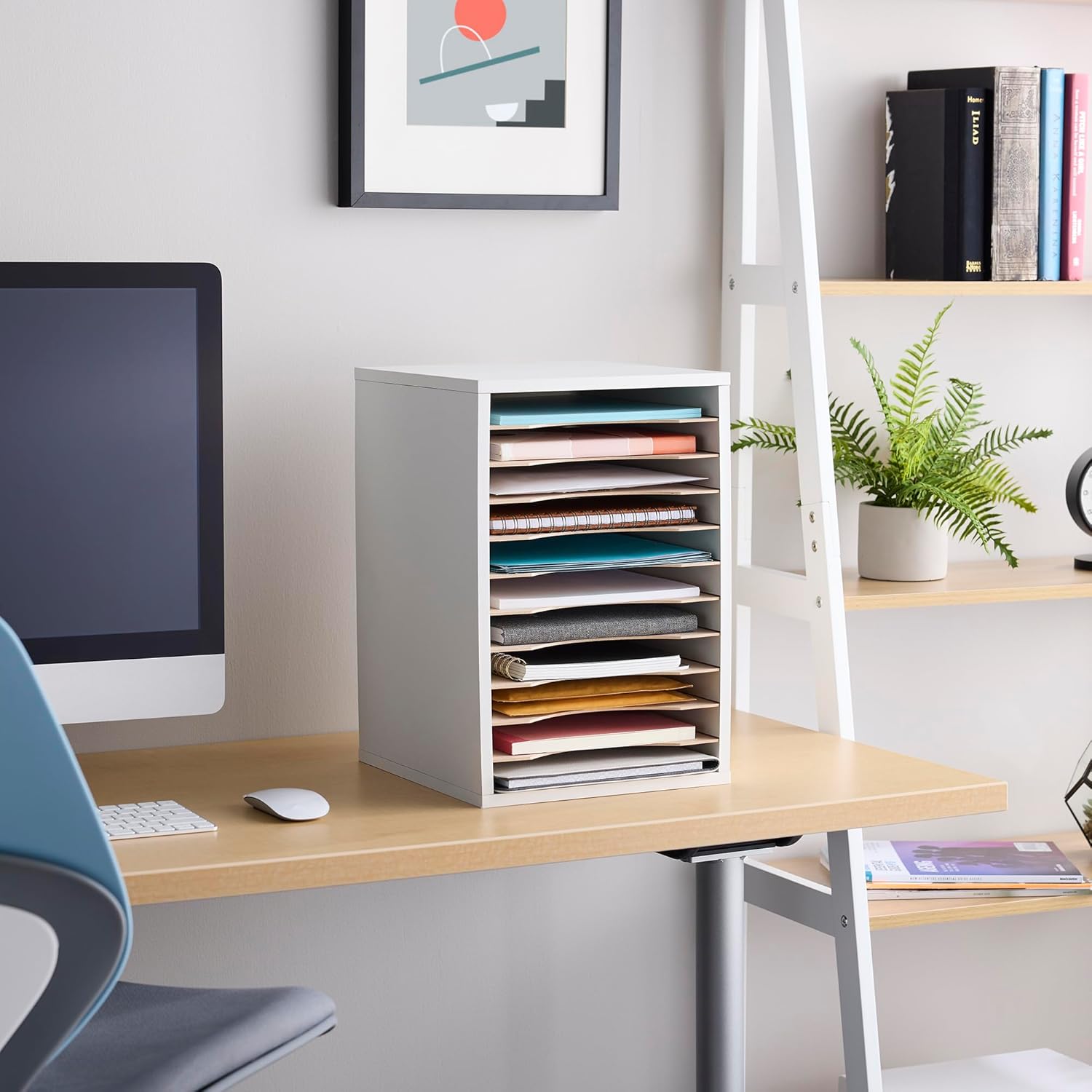 - SIMPLE SORTING. Safco Vertical Desktop Sorter, 11 Compartment helps keep workspaces organized and efficient by storing letterhead, stationery, envelopes, literature and other letter-size materials within easy reach.