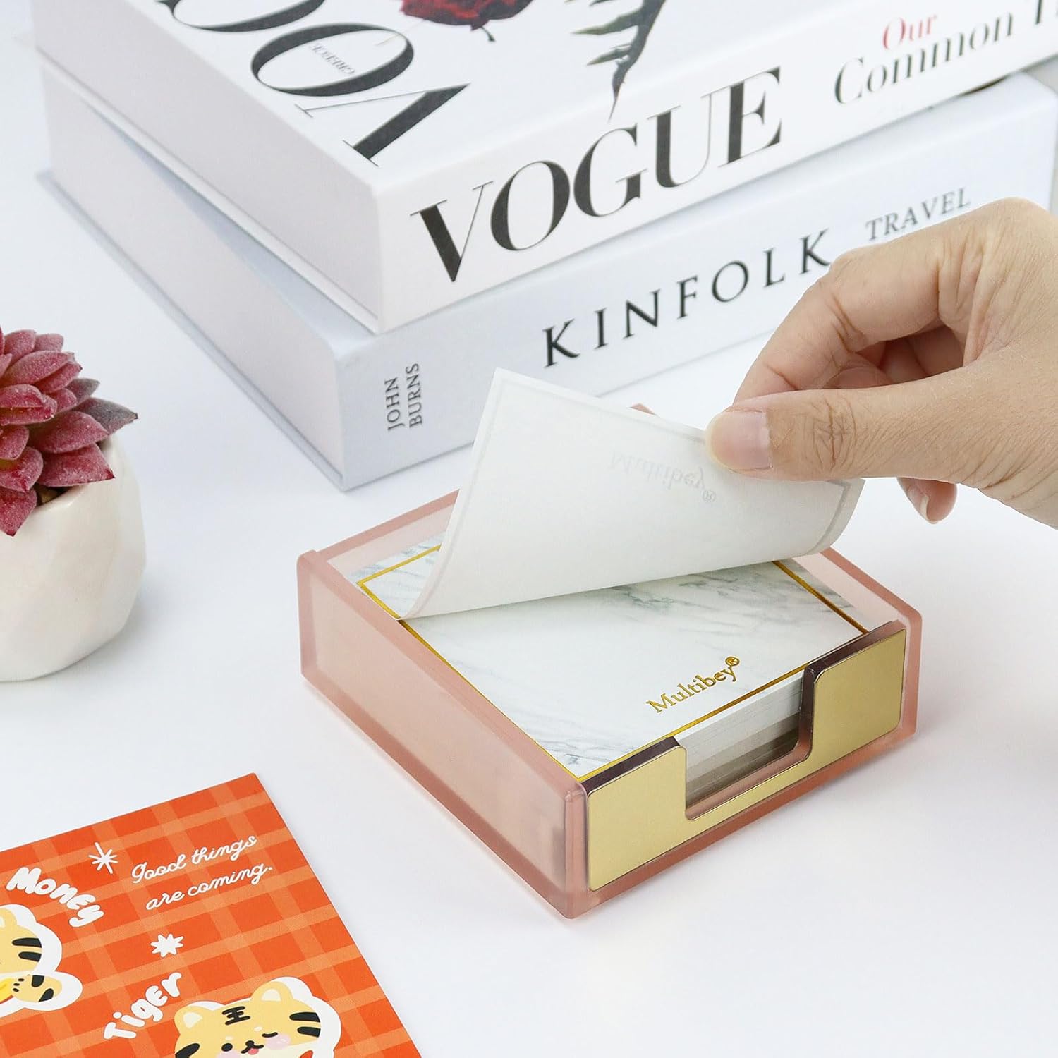 MultiBey Sticky Notes Memo Pad Holder Dispenser Rose Gold with Pink Desk Supplies Organizer Accessories for Office Home Schools (Pink)