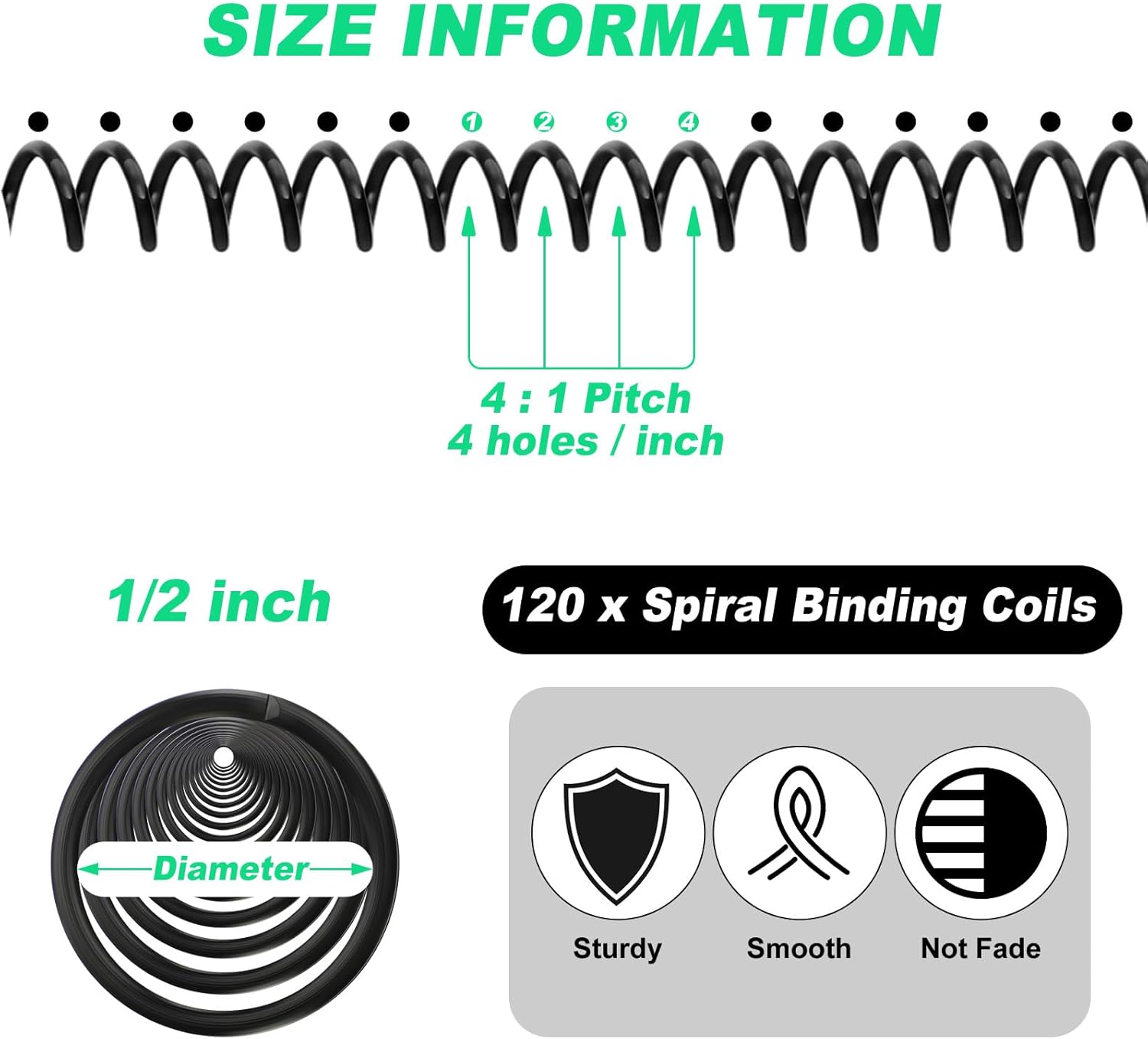Leinuosen 120 Pack Plastic Spiral Binding Coils Kit Spirals Multi Size Coils for Binding Binder Combs Spines(1/2 Inch,Black)