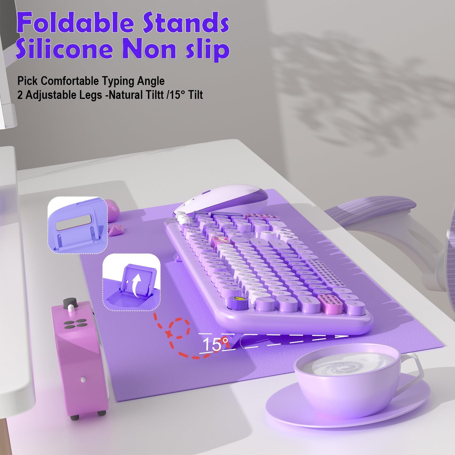 MOFII Keyboard and Mouse Wireless, 104 Round Keys Lovely Full-Size Cute Colorful Keyboard and Mouse with Retro Typewriter for PC/Mac/Laptop/Tablet/Computer/Windows Purple