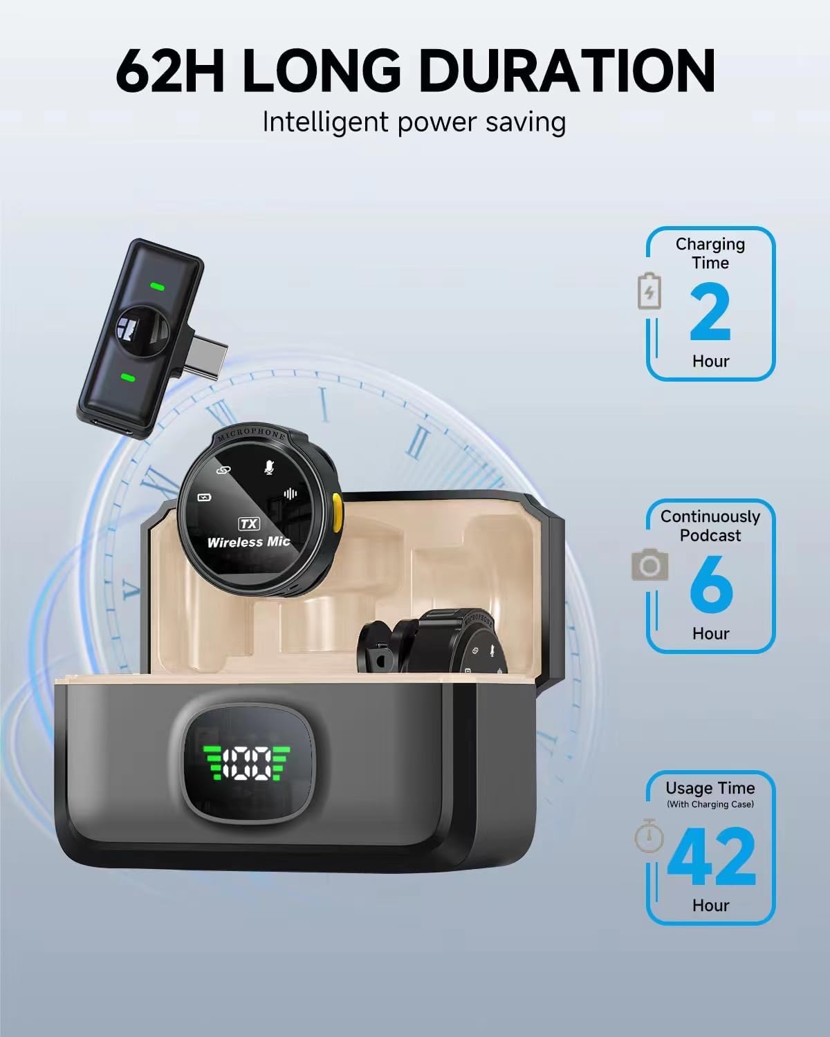 - What You Get: 2*TX (2 Transmitters) + 1*RX(1 Receiver ) +2*Adapter+2*Windscreen+ Charging Case + 2*Charging cable + Instruction.