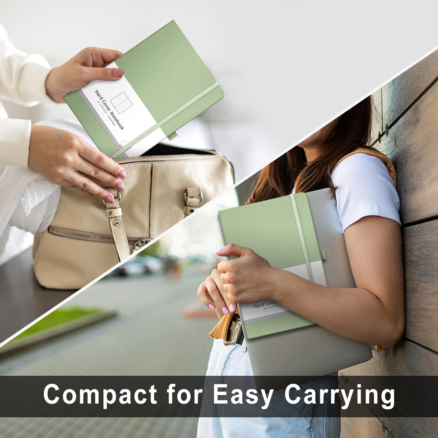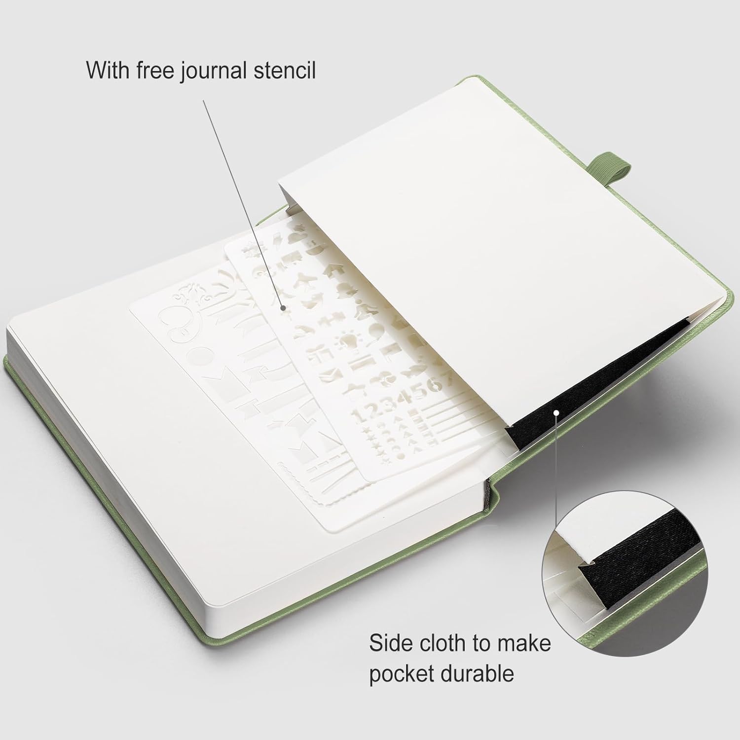AHGXG Bullet Dotted Journal - 320 Numbered Pages Dot Grid Notebook A5 Thick Journal, 100gsm Thick Dotted Paper, Leather Hardcover,Inner Pocket, 5.75'' × 8.38''-LightGreen
