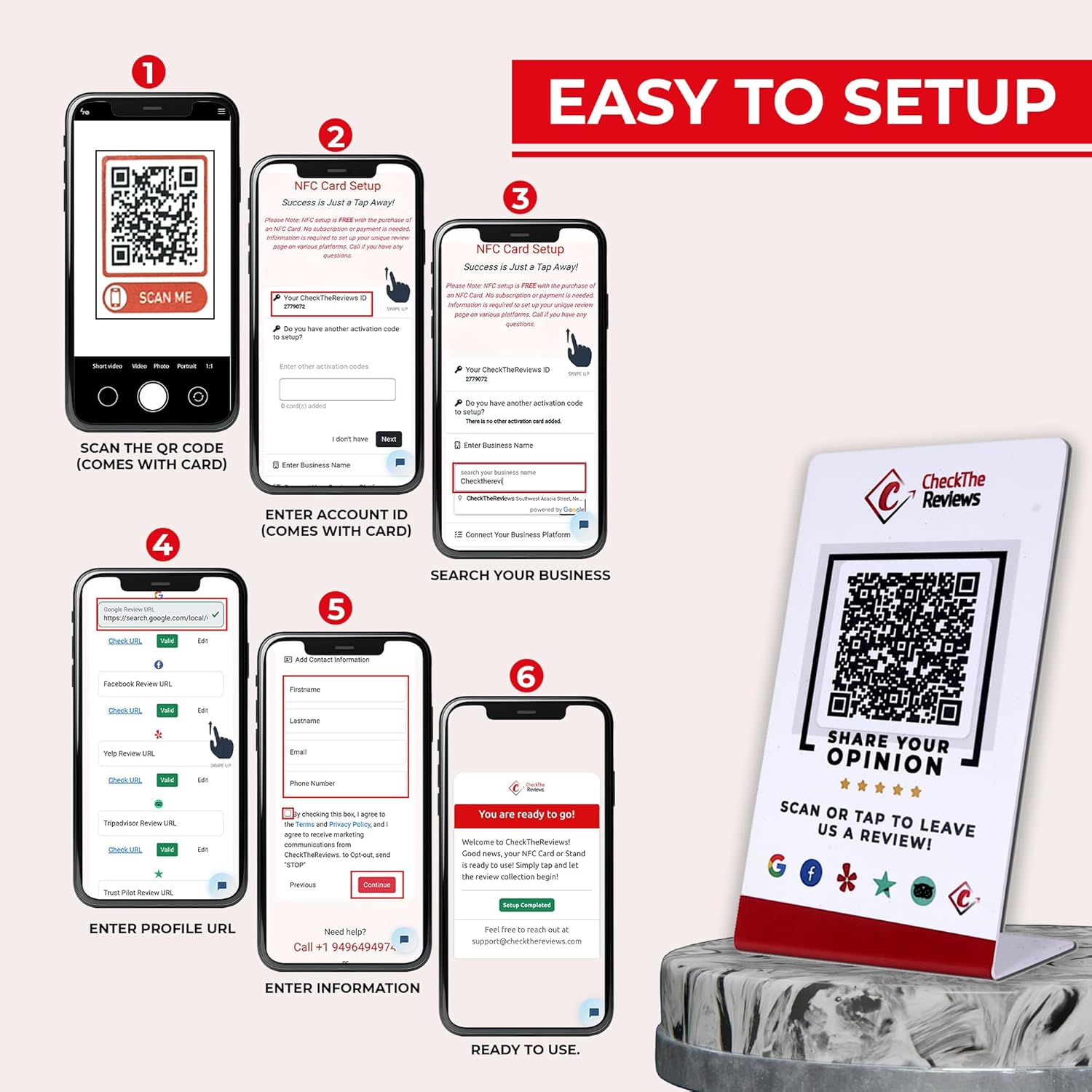CheckTheReviews NFC Review Stand - Instant Digital Feedback Collection with Customer Friendly Scan Setup - All Phones & QR Compatible - Tap to Review for Business, Hotels, Shops, Cafes & Restaurants