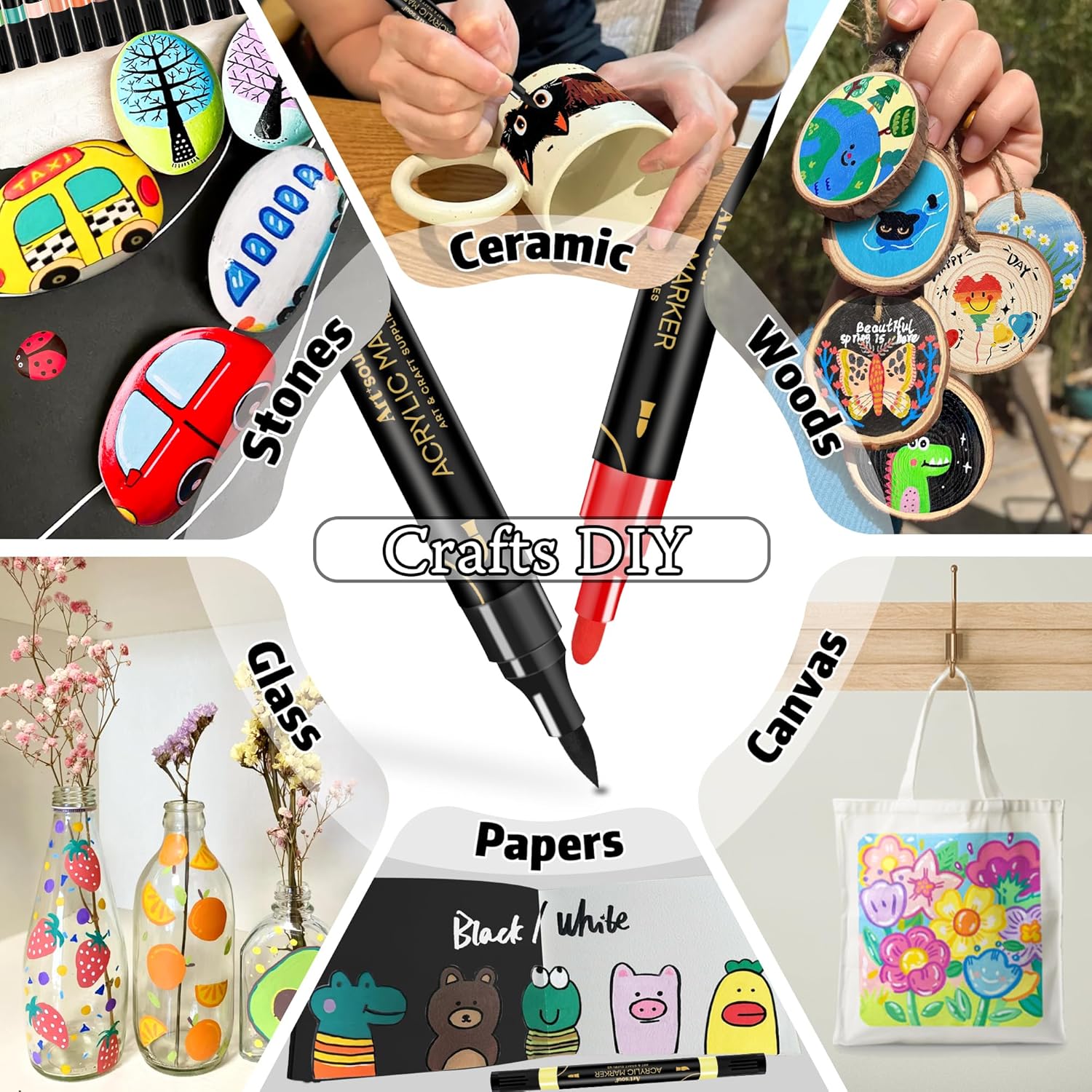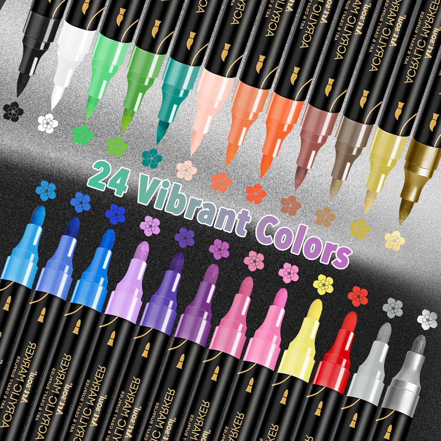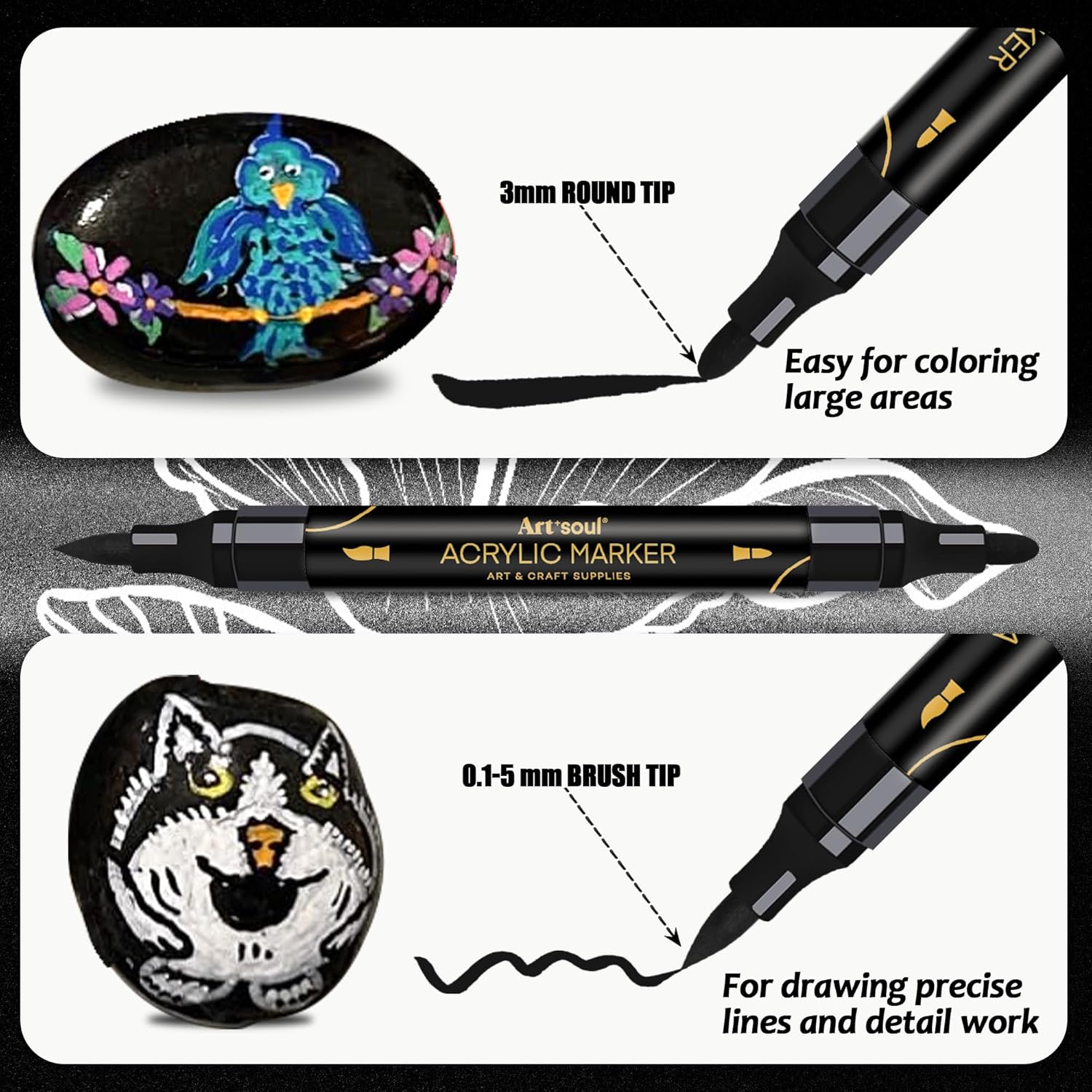 Art+soul 24 Colors Acrylic Paint Pens-Dual Tip Markers, Vibrant, Long Lasting Colors that Dry Quickly, Ideal for Canvas, Paper, Glass, Ceramic, Wood, and Rock