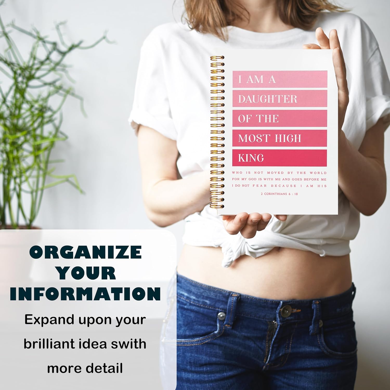 BearCake Pink I am Daughter of the Most High King Christian Notebook Journal, Christian Gifts for Women, Bible Notebooks for Note Taking, Bible Journaling Notebook, Hardcover Spiral Notebook 5.5x8.3