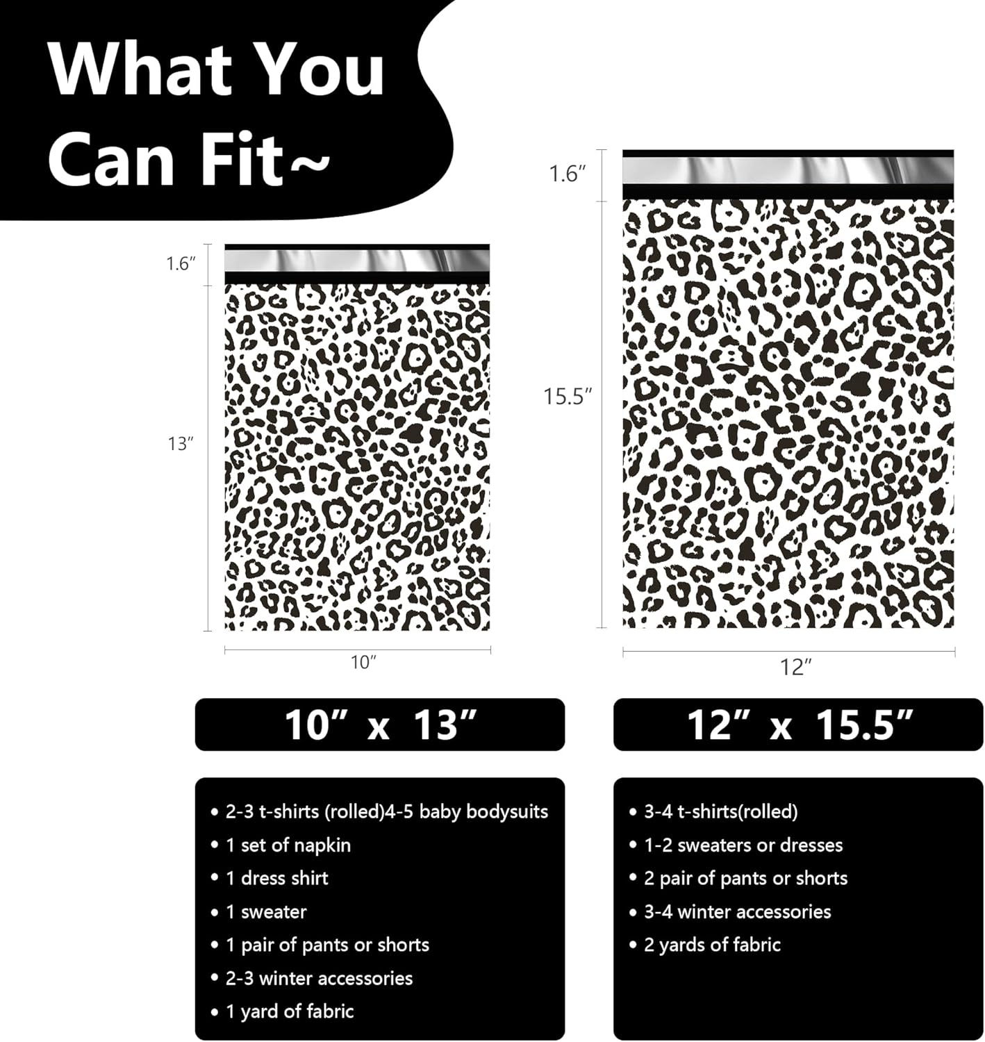 Poly Mailers 10x13 Inch 100 Pcs - Leopard Printed Shipping Bags, 2.4mil Thickness, Waterproof and Tear Resistant Mailing Envelopes, Self-Sealing Packaging Bags for Small Business