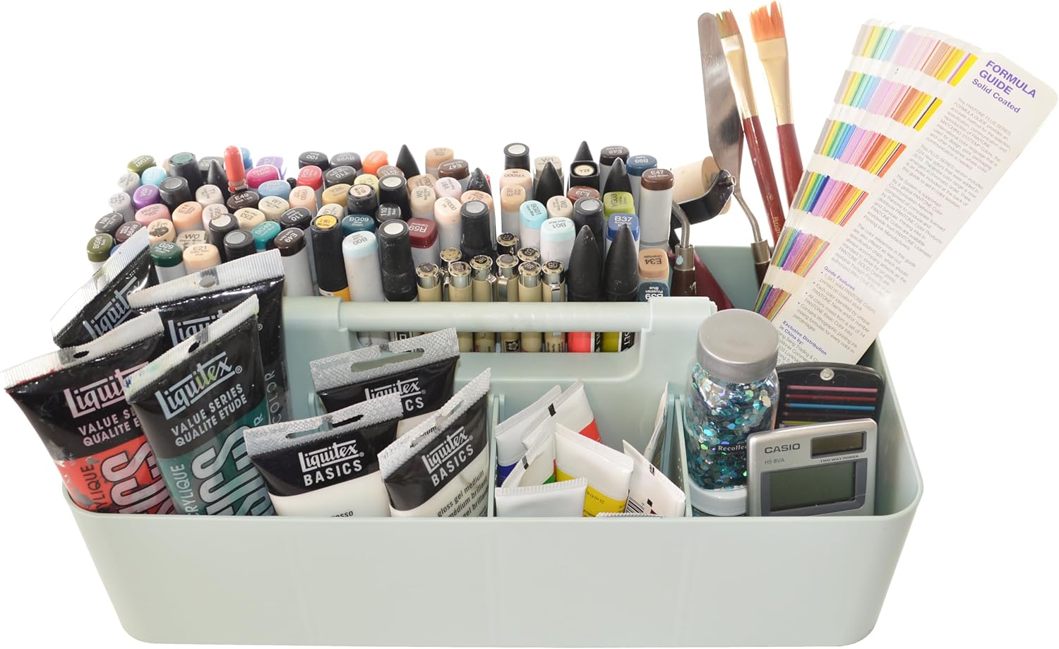 - PORTABLE: Equipped with an easy-carry round smooth handle, this caddy makes transporting goods from shelf to cabinet or desktop a breeze. Just grab and go! The open tops and divided compartments make it easy to see whatβs inside and quickly grab what you need. Use these convenient storage caddies to keep office desk items organized, children's crafting items tidy, and school supplies in check. Perfect for both home and commercial workspaces.