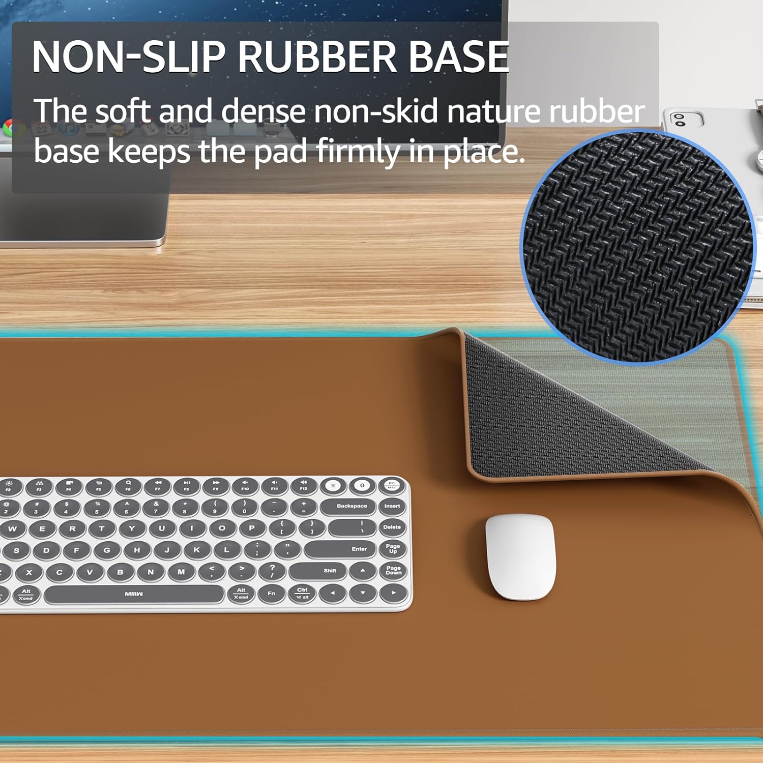 - Non-slip Rubber Base: The soft and dense non-skid nature rubber base keeps this desk pad firmly in place. This large mouse mat remains uniformly flat even over imperfect surfaces. Just immerse into your work or games without worrying about the annoying mouse pad movement.