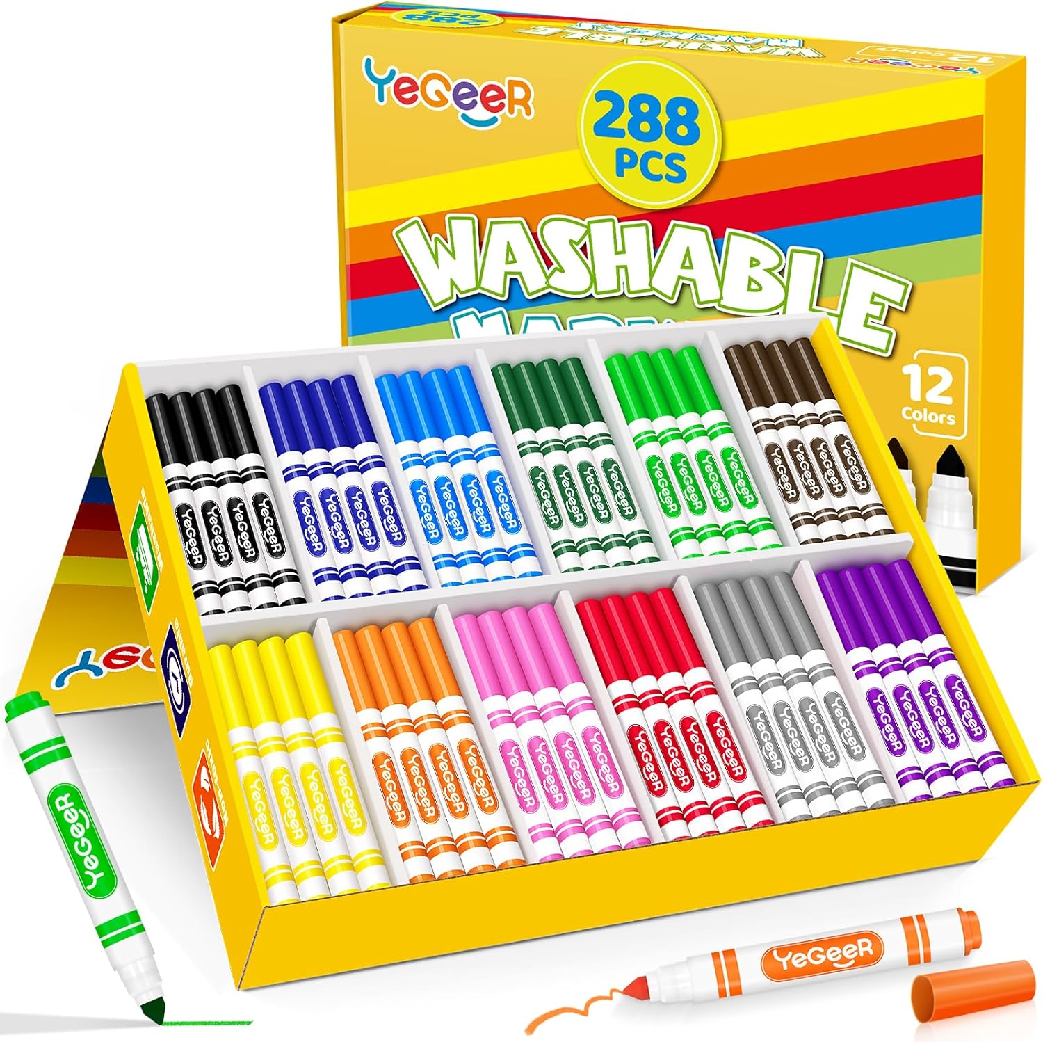 - Washable Marker Set: Our set contains 288 washable markers, the bulk colored pens have 12 classic colors, 24 each. The bright colors not only meet the children/students' painting needs, but also inspire their creativity. It is suitable for classrooms, homes, especially when you play with a group of children.