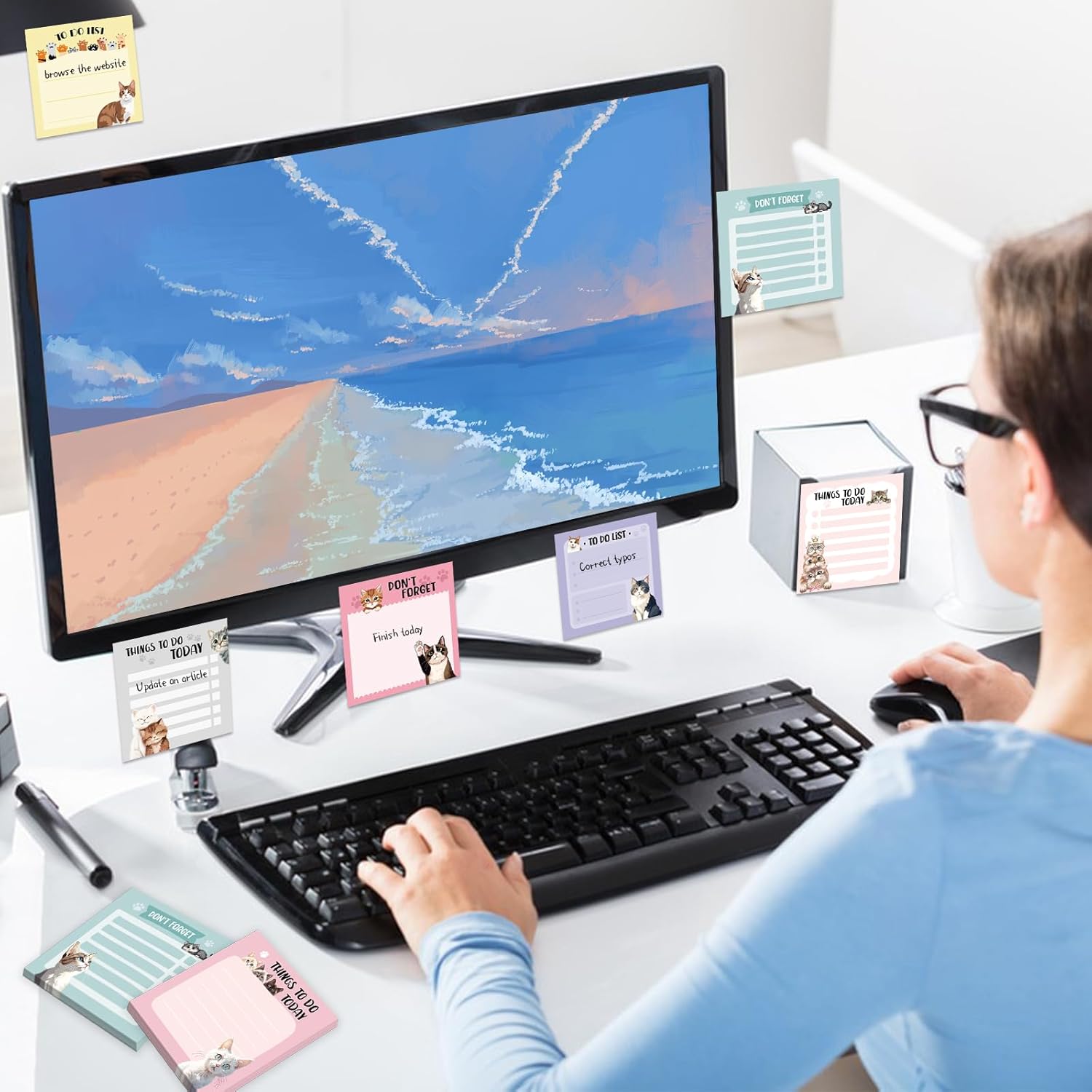 600Pcs Cat Sticky Notes, Funny Cat to Do List Notepad Cat Theme Self Stick Note Pads Cute Cat Memo Pads Kawaii Cartoon Animal Sticky Notes for Cat Lover Office Home School Supplies