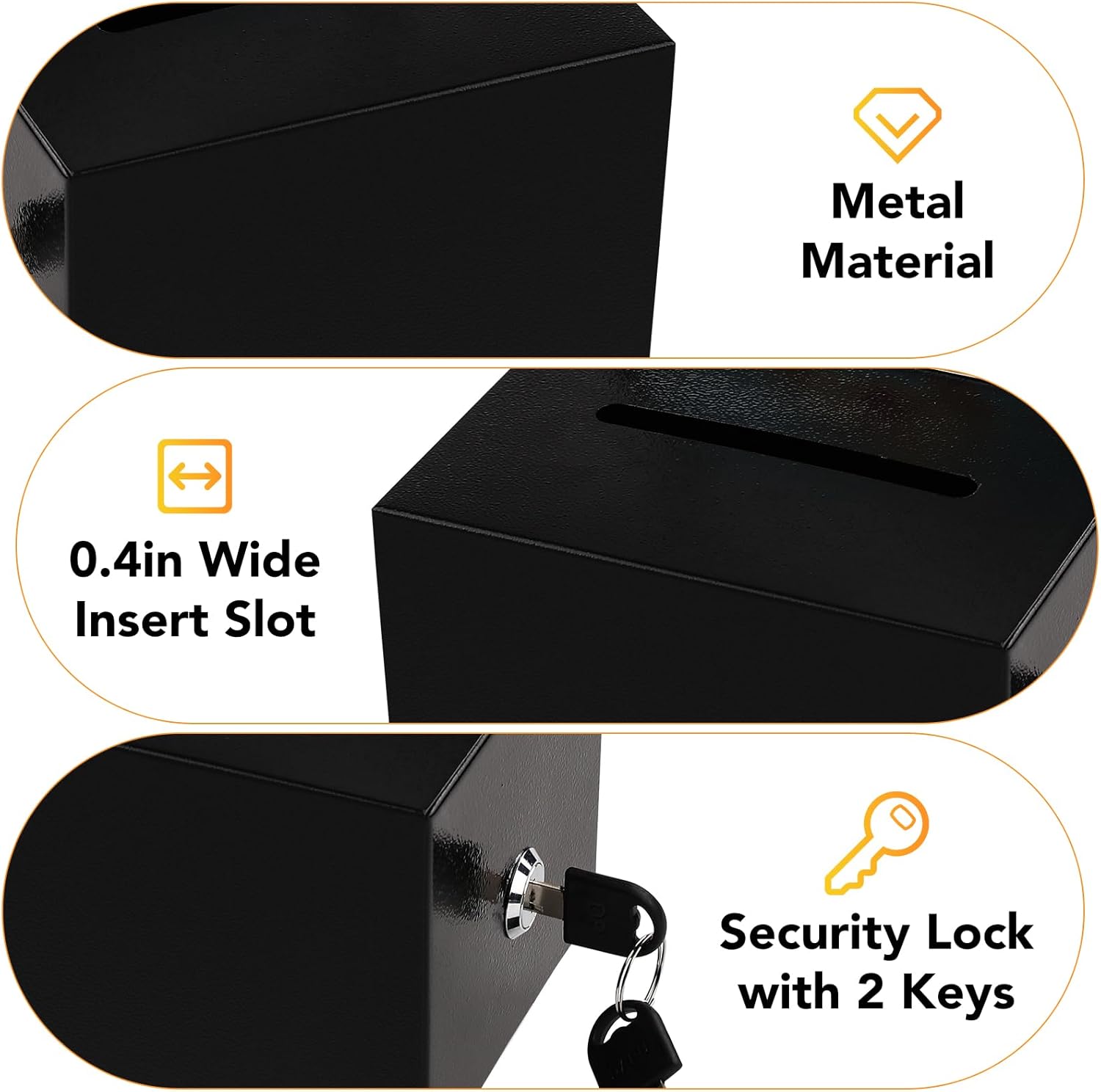 Tip Jar 2 PCS Suggestion Box with Slot and Lock Metal Donation Raffle Fundrais Cash Ballot Money Ticket Bartender Voting Prayer Comment Teacher Mailbox Booth Card Classroom Restaurant Black