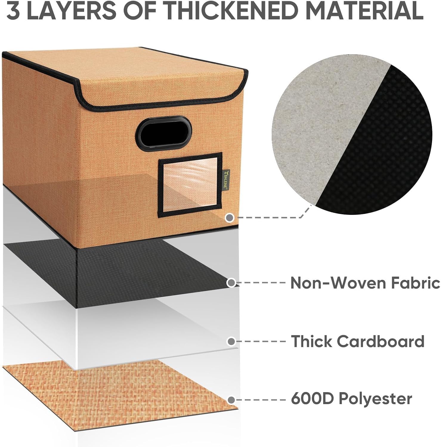 - [DURABLE MATERIAL] The outer layer of our filing box is crafted from high-quality polyester fabric and reinforced with thick cardboard in the middle. This construction ensures that the box maintains its shape and provides better bearing capacity for important documents and files. Its textured appearance can also serve as a stylish decorative element in any office or home.