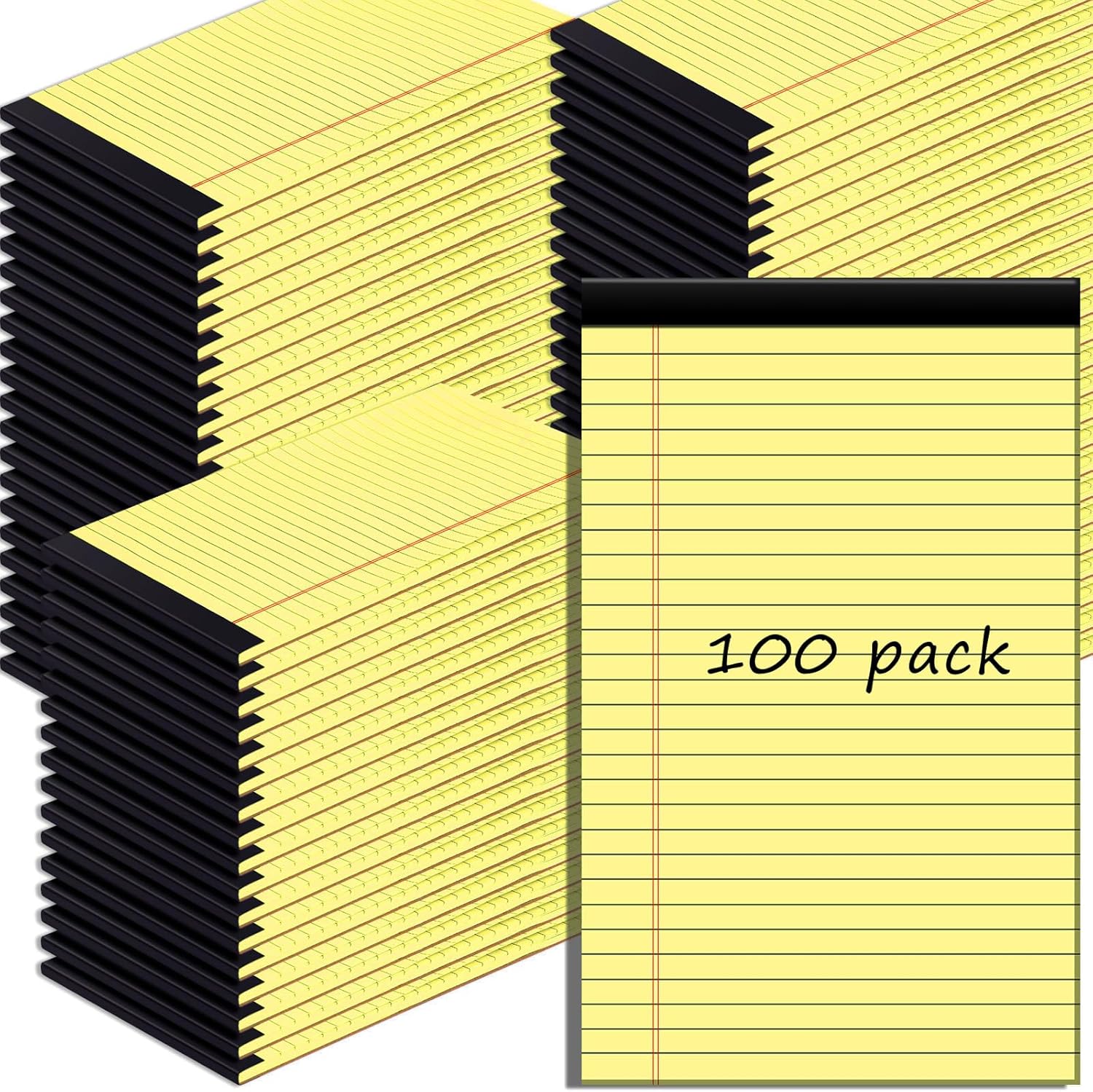 Gueevin 100 Pcs Legal Pads 5x8 Inch Note Pads Lined Small Notepads Bulk Wide Ruled Writing Paper 5 x 8 Mini Notebook for School, College, Office, Classroom Supplies, 40 Sheets (Yellow)