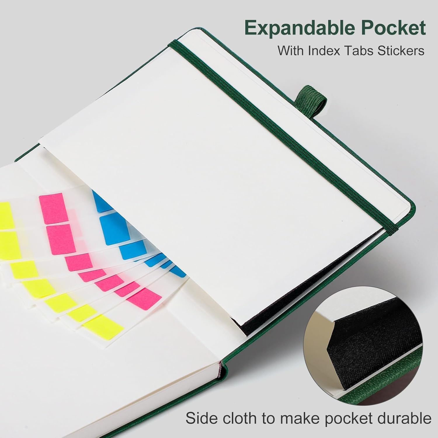 - CONVENIENT AND PRACTICAL LAYOUT: Features a pen holder for easy access to your pen, an elastic band to keep your notebook securely closed, 2 bookmarks for quick page referencing, an inner pocket for storing loose papers, and 18pcs sticky notes for additional organization and reminders