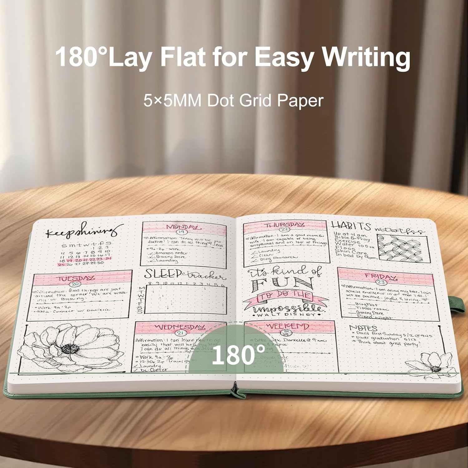 - 120 GSM PREMIUM PAPER: This dot grid notebook adopts 120 GSM acid-free paper in a light ivory color, ink-friendly, and prevents ghosting and feathering, making it perfect for pens, pencils, and markers
