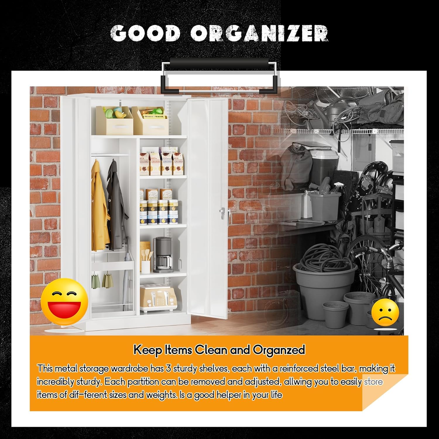 Greenvelly Metal Storage Cabinet Locker with Locking Doors,72" Metal Wardrobe Cabinet, Steel Storage Wardrobe with Hanging for Home Office, Garage, School, Gym(White 36" ×18")