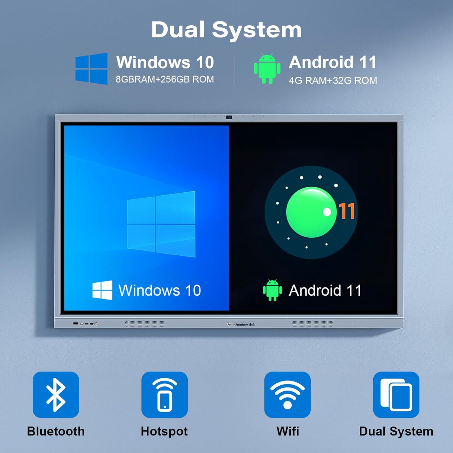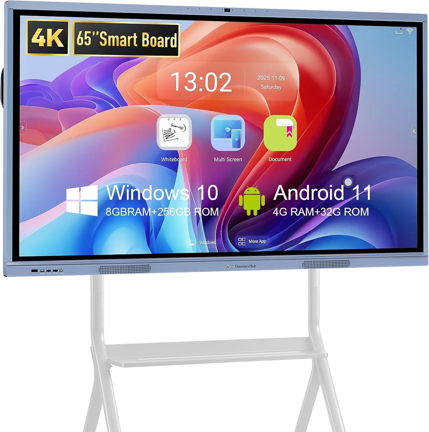 65" Smart Board, Interactive Whiteboard, 4K UHD Touch Screen Digital Board, Digital Electronic Smartboard with Dual System, for Classroom,Office & Conference Rooms (Wall Mount Included)