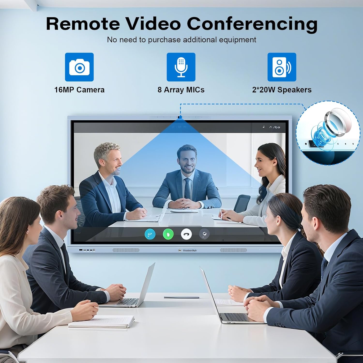 - 【ALL-IN-ONE VIDEO CONFERENCE SYSTEM】Built-in 16MP camera, 8-array mics, and 40W speakers transform this digital whiteboard into a Zoom/Teams powerhouse. Share annotations in real-time during remote meetings – ideal for hybrid work or smart board for home office setups.