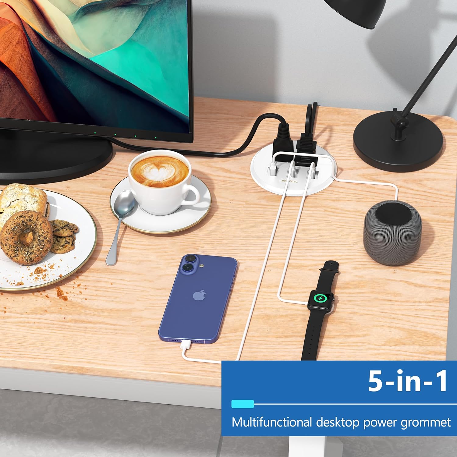 - Safe and Reliable - LIDER desk grommets are designed with safety in mind, with Tamper-Resistant outlets. Specifications include: Max wattage: 1500W; Single USB Type-C: 5V/9V/12V/15V/20V, 3A(60W); Dual USB Type-C: 20V/1.5A, 15V/2A, 12V/2.5A, 9V/3A, 5V/3A(30W+30W); USB Type-A: 5V/1.2A; USB Type-C + USB Type-A: 60W+5V/1.2A; USB Type-C1 + USB C2 + USB Type-A: 30W+30W+5V/1.2A; AC cord type: 6.5ft 16AWG Appliance cord, NEMA 5-15P. Plus, enjoy a 1-year warranty for added peace of mind.