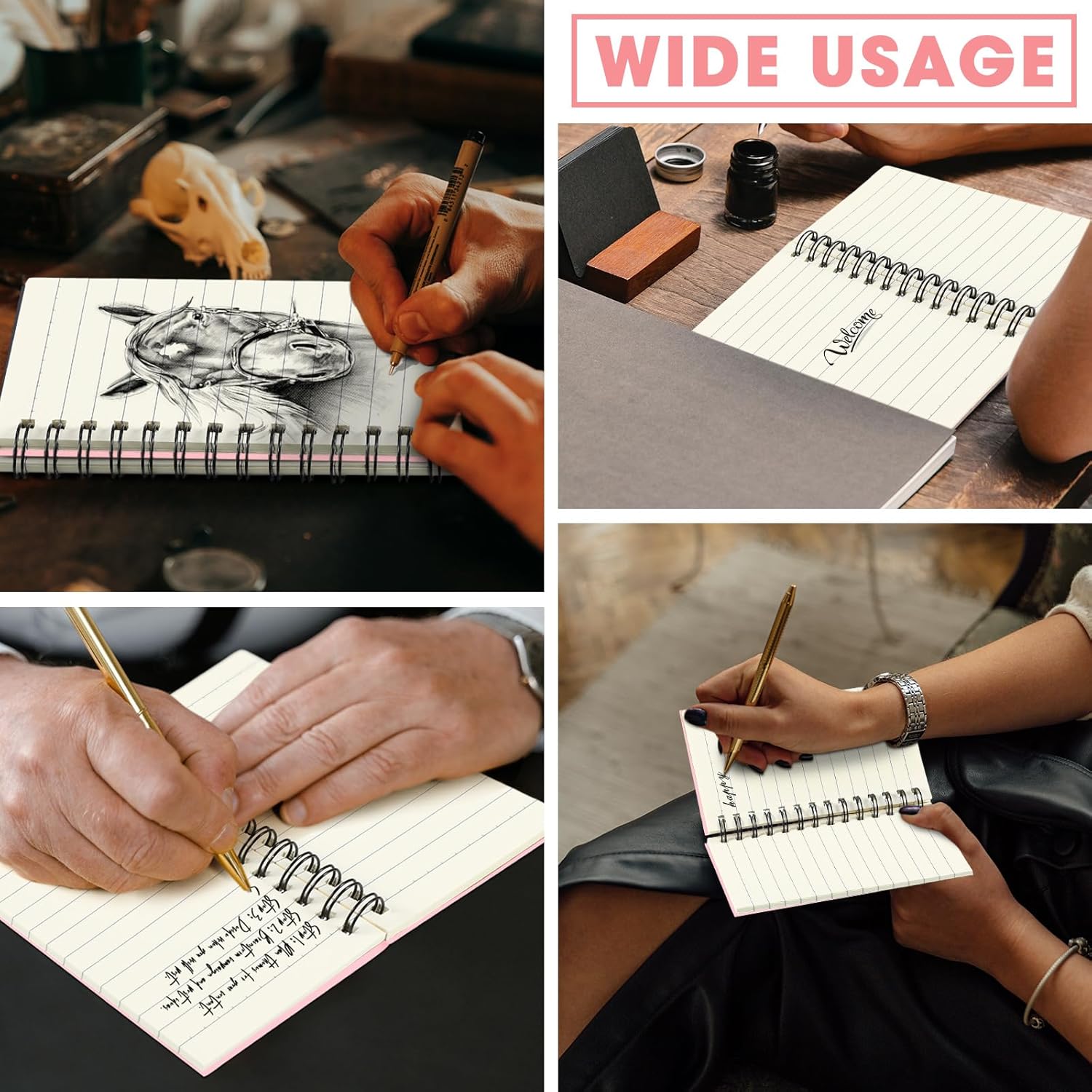 - Widely Applicable: These small spiral notepads perfect for business, conference, travelers notebooks, composition, schoolwork, for keeping a travelogue, a daily journal, planning, note-taking and anything important,and you can also use them for creative scrapbooking or handwriting books to inspire your creativity and imagination