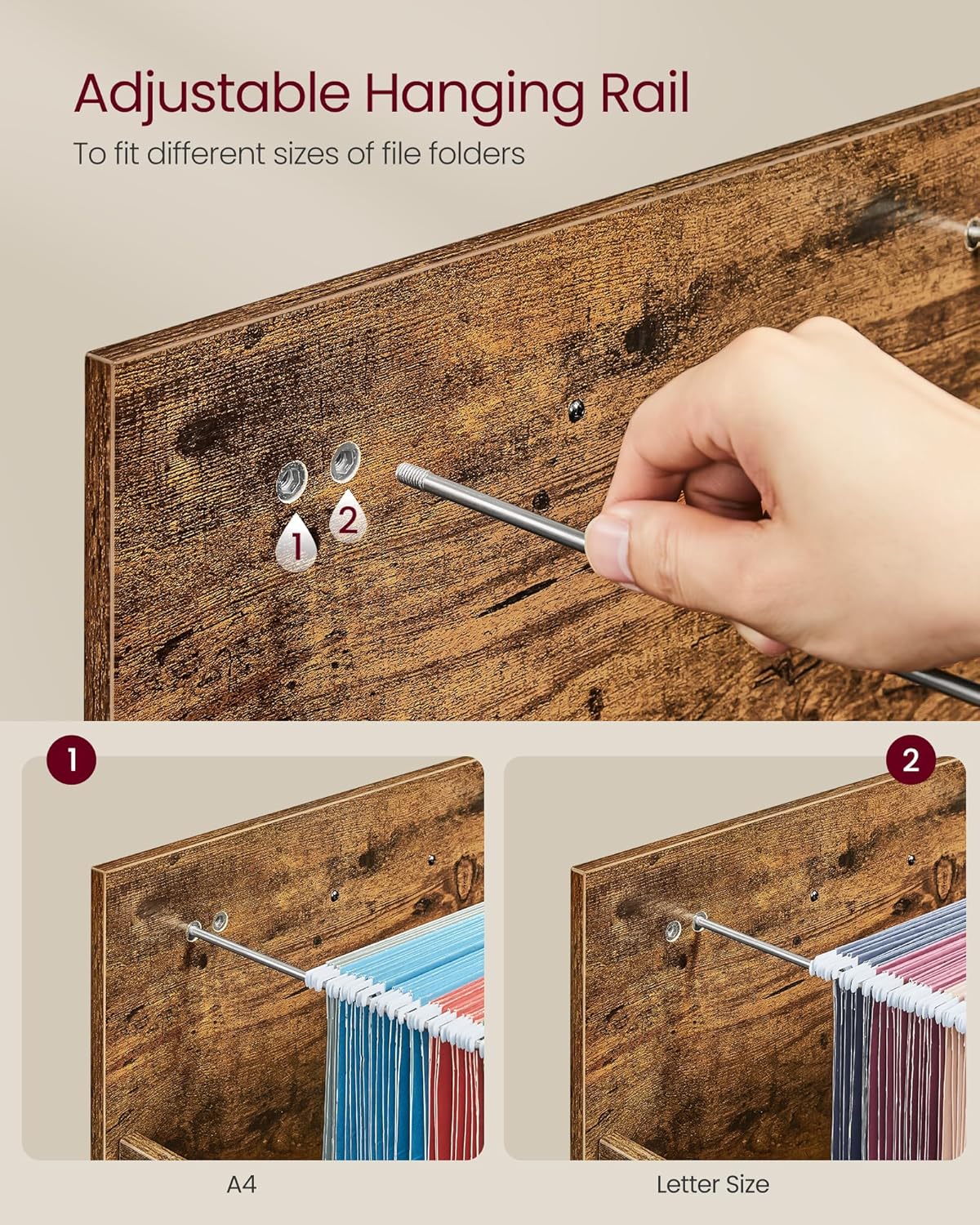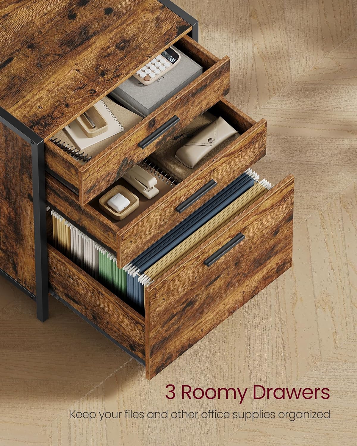 VASAGLE File Cabinet, Home Office Filing Cabinet with Height-Adjustable Open Shelves, 3 Drawers, for A4, Letter-Size Hanging File Folders, Steel Frame, for Home Office, Rustic Brown UOFC078B01