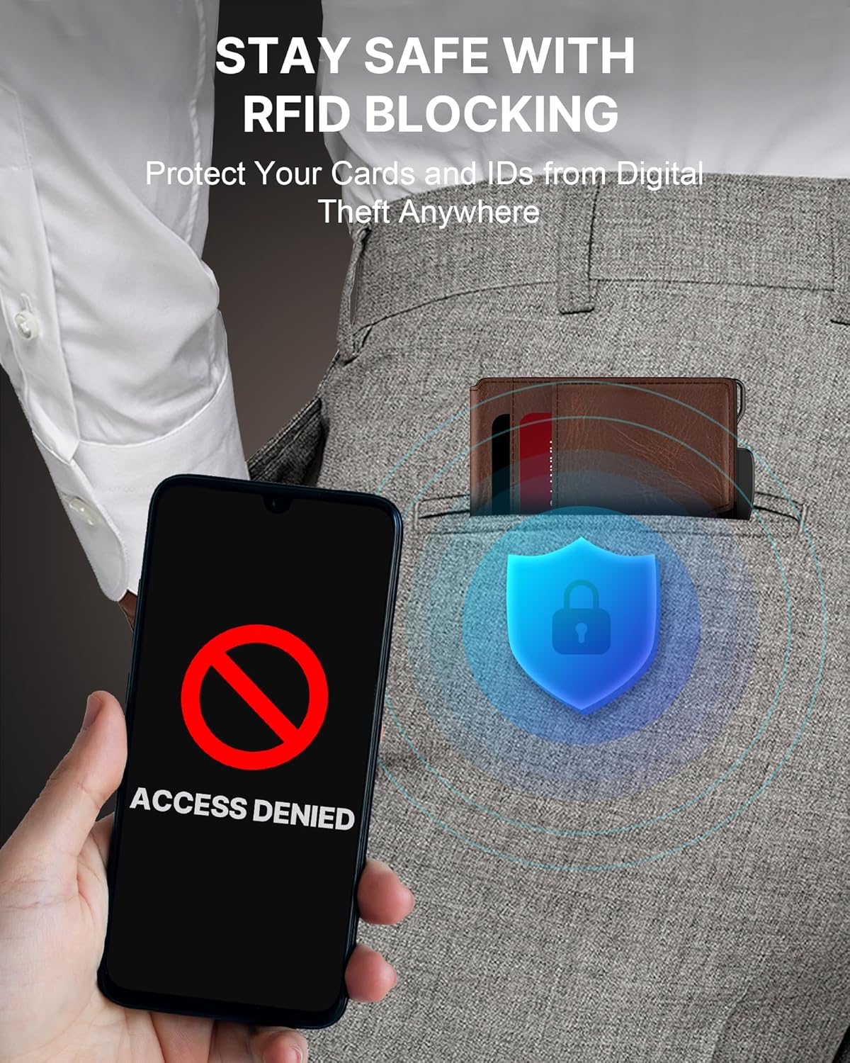 - RFID Protection: Protect your cards and personal information with advanced RFID blocking technology, effectively blocking the 13.56 MHz frequency. This ensures that your cards are protected from unauthorized scanning.