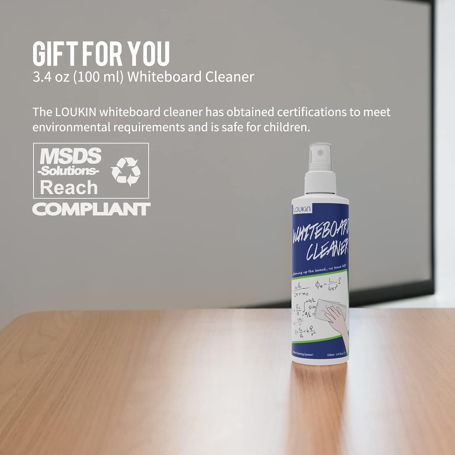 - Cleaner Included: 1 bottle of 3.4 fl oz whiteboard cleaner (AP certification, non-toxic & low-odor) included. Effectively cleans stubborn marker ink with the LOUKIN cleaner