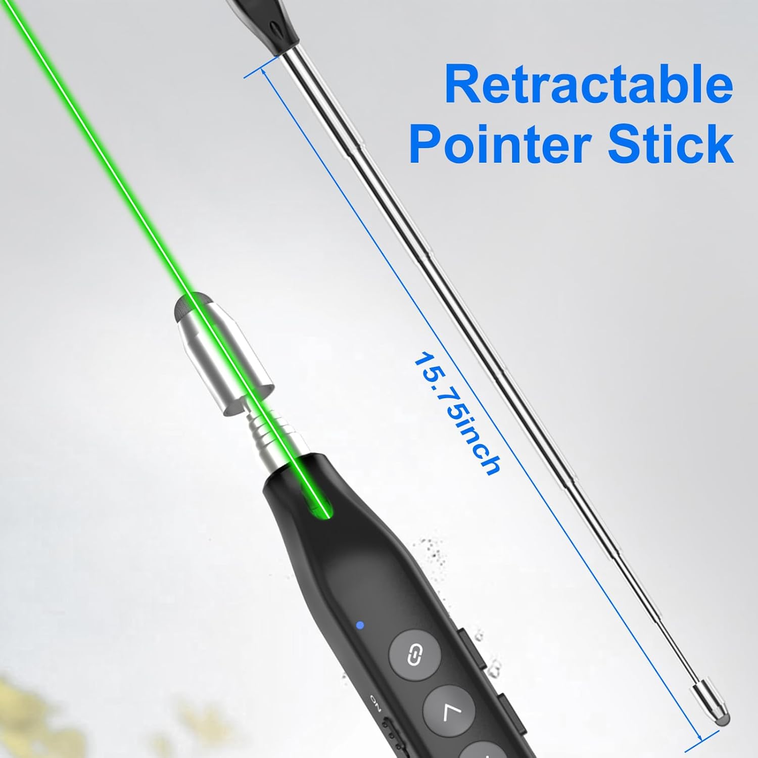 Presentation Clicker Telescopic Pointer: Powerpoint Remote Wireless Presenter Green Laser Stylus Pen for Touch Screen, Google Slide Smart Board Retractable Stick for Mac Computer (Rechargeable)