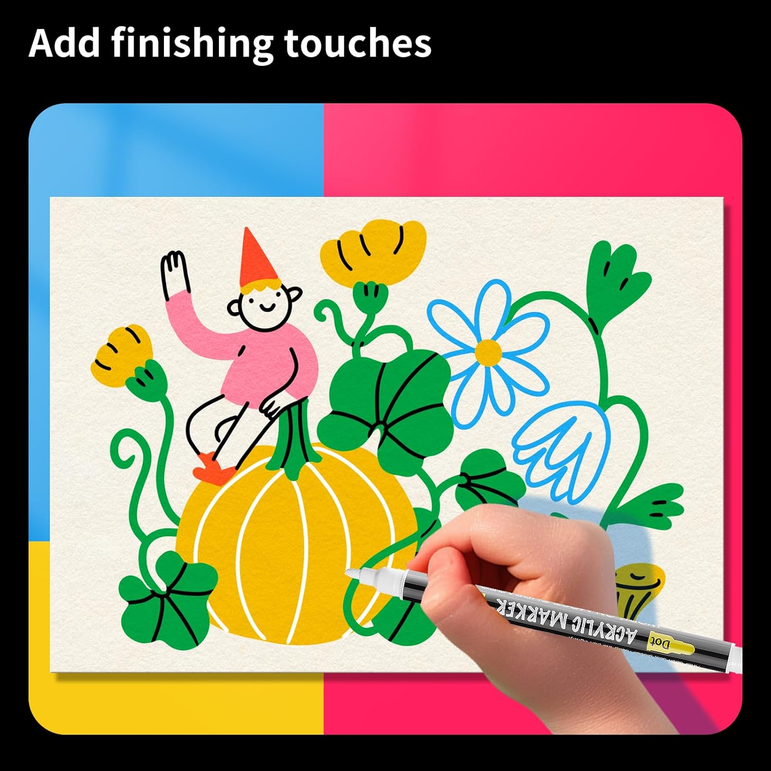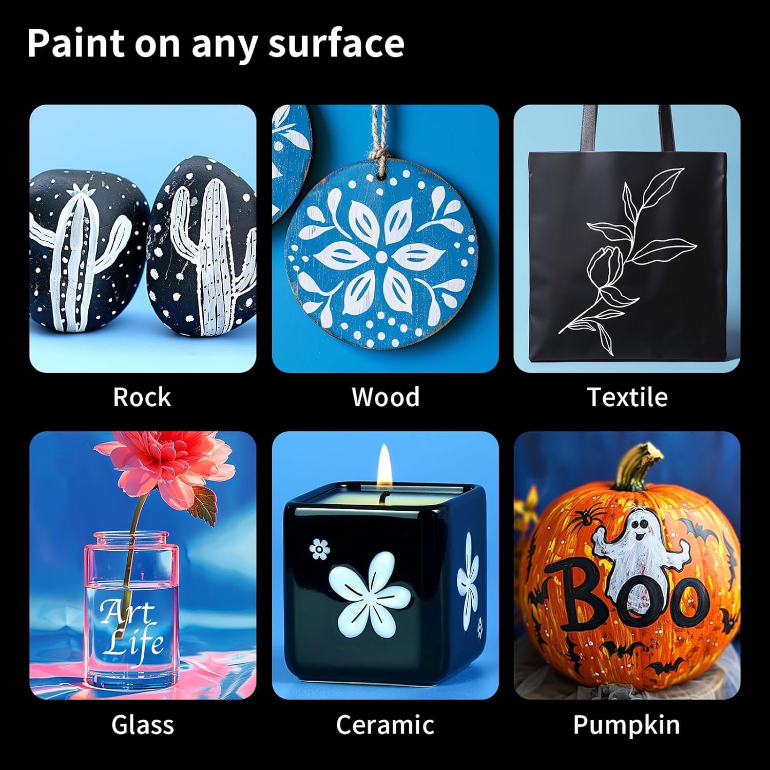 - DUAL TIP: Our rock painting pens come with a 1-5 mm dot tip and a 1mm fine tip. Designed to give you the flexibility to switch effortlessly between fine lines and bold strokes, these paint pens acrylic markers expand your creative horizons and enhance the intricate details in your work.