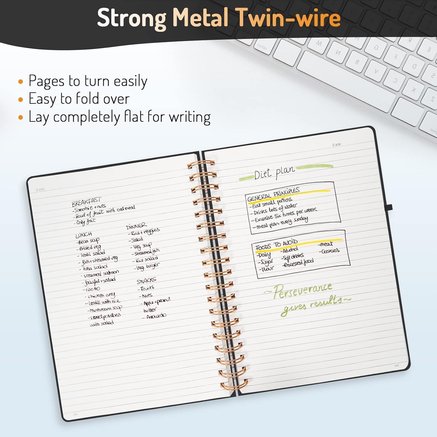 - Strong Metal Twin-wire & Durable Hardcover: Feature a super durable Golden double wire spiral binding with heavy-duty hardcover; making it easy to fold over and laying the notebook totally flat easily, giving you a better writing experience. The professional durable water-resistant hardcover will protect your journal to last for years.