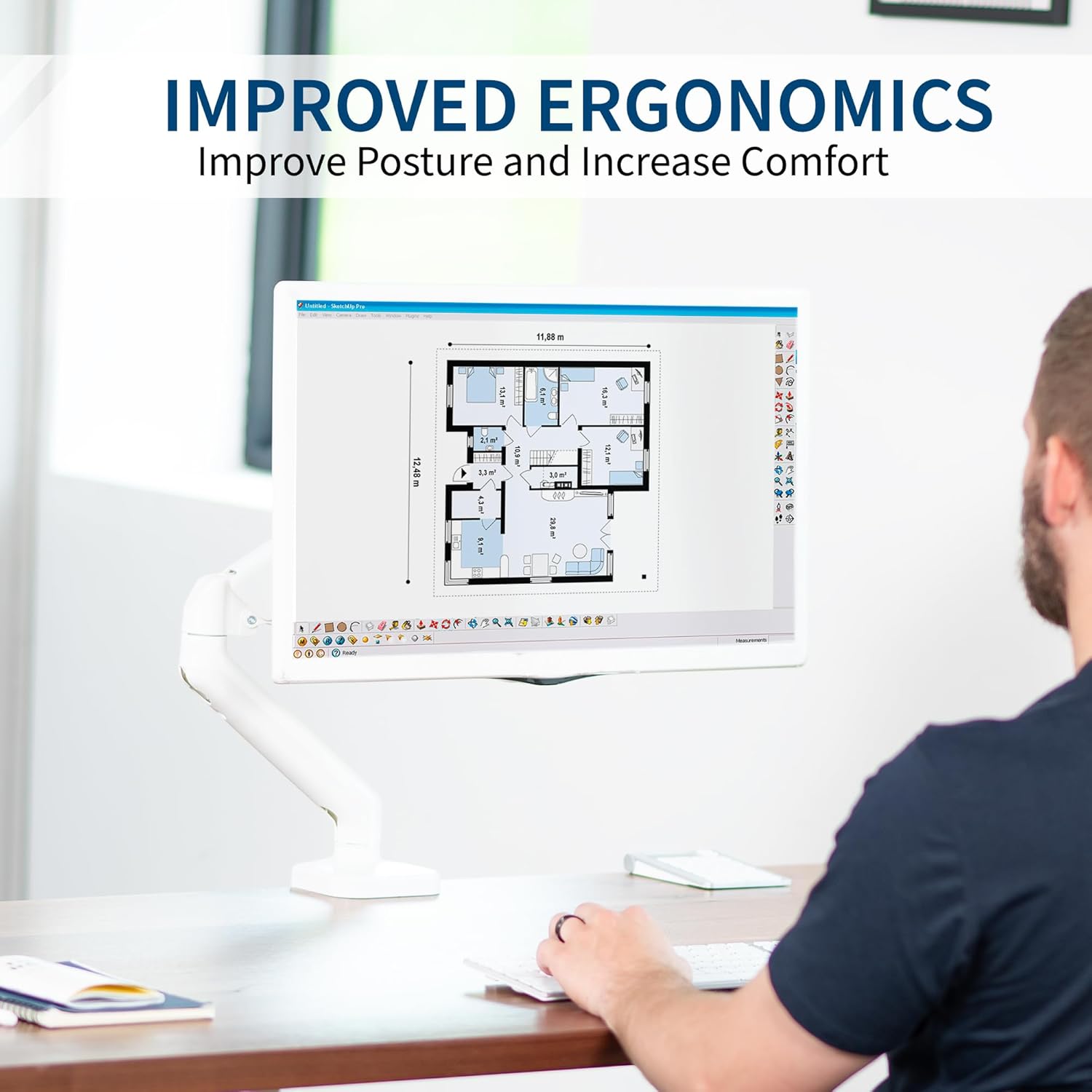VIVO Single 17 to 32 inch Monitor Height Adjustable Counterbalance Mechanical Arm Desk Stand, Classic, Universal VESA Mount, White, STAND-V001OW