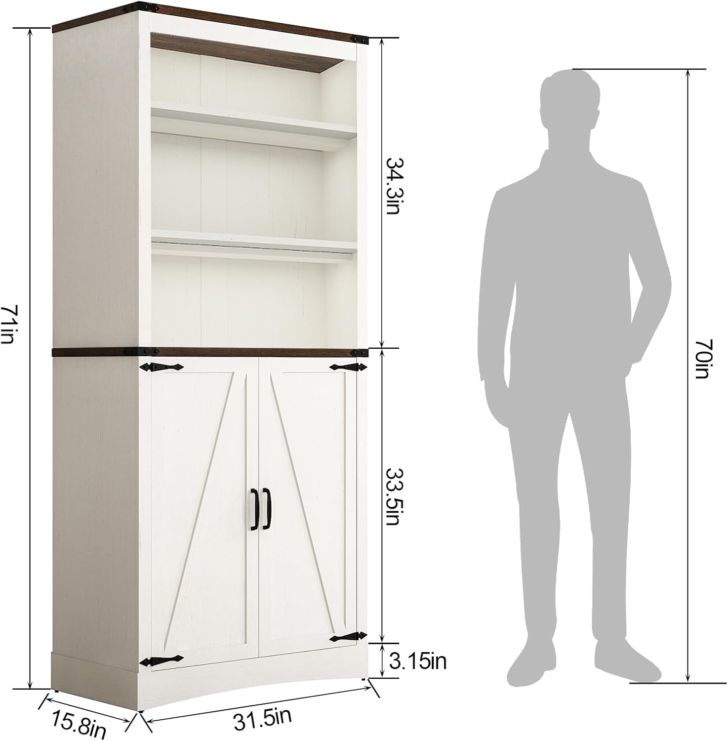 - Large Kitchen Pantry Cabinet:This kitchen pantry cabinet measures๏ผ15.7in D,31.5in W,71in H.There are 5 storage spaces in the storage cabinet.The three middle shelves within the cabinet are both adjustable and removable, featuring three height options that cater to your different storage preferences.