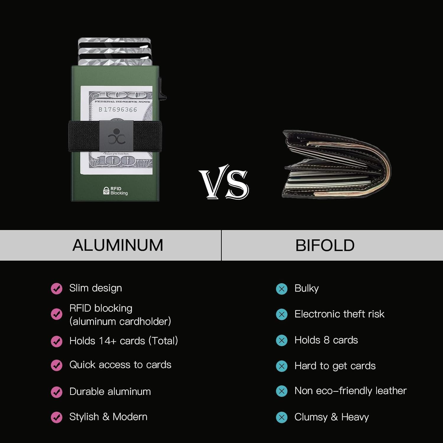 - π RFID & NFC BLOCKING: Advanced aluminium technology protect your cards from unauthorized and contactless scanning. Stop thieves from cloning your bank cards and prevent data theft.