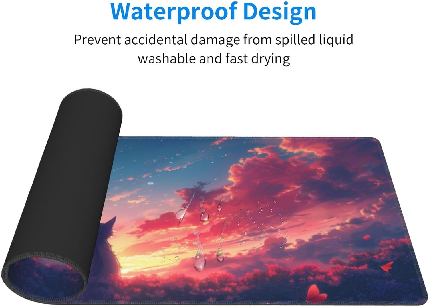 Gaming Mouse Pad Desk Pad,Extended Big Mouse Pad,31.5x11.8 Inch Long Computer Keyboard Mouse Mat Mousepad with 3mm Non-Slip Base and Stitched Edge for Gaming and Office… (Sunset Cat)