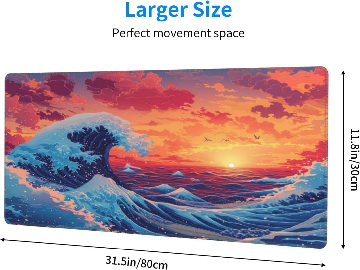 Gaming Mouse Pad Desk Pad,Extended Big Mouse Pad,31.5x11.8 Inch Long Computer Keyboard Mouse Mat Mousepad with 3mm Non-Slip Base and Stitched Edge for Gaming and Office… (Sunset Wave)