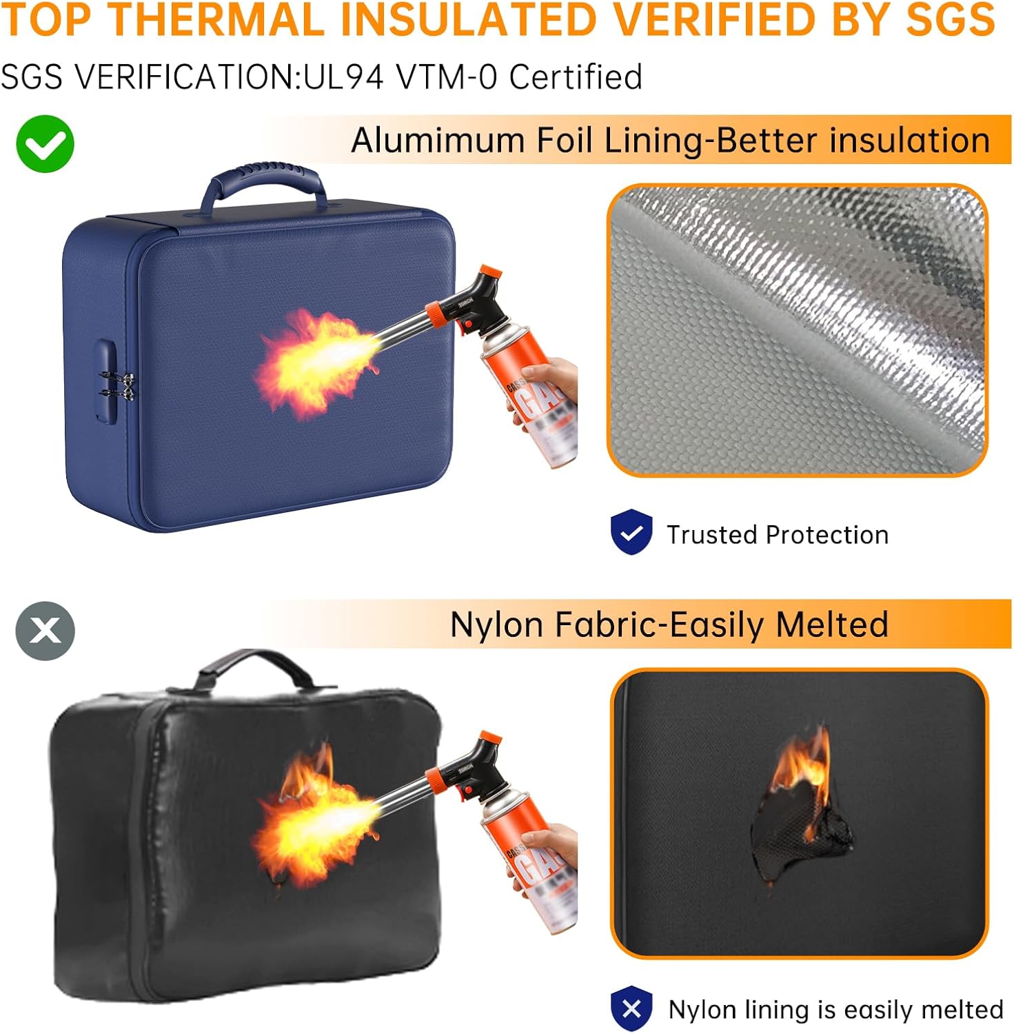 - 5200°F Fireproof & Water-resistant safe: The Upgraded important document organizer is made of thickened silicone coated fireproof cotton material and aluminum foil which withstand the temperature up to 5200℉(double safe protection). Aluminum foil lining isn’t easily melt under high temperature after several tests. It has been passed by SGS TEST(UL94 VTM-0 Certified).The bag is fireproof&Water-resistant, which can effectively protect your important documents in a fire, flood, and wet weather