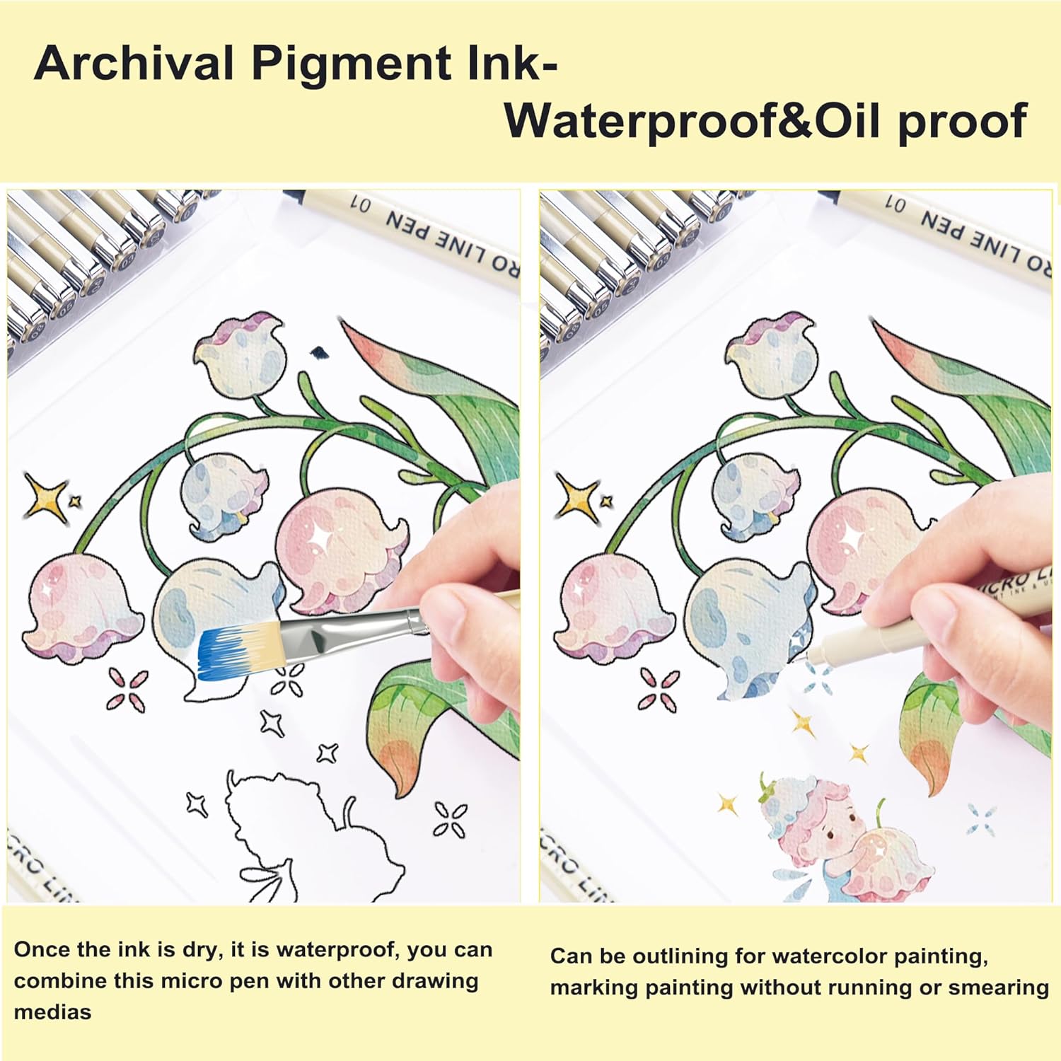 - Versatile & Waterproof [Except Brush Tip (β₯οΉβ₯)]: Once the ink of this micro pen dries, it becomes waterproof. You can use these fineliner pens before or after applying other art materials, such as watercolor, acrylics, or oil paints, to achieve different artistic effects. Ideal for calligraphy, drawing, and journaling, making them a must-have for every creative project.