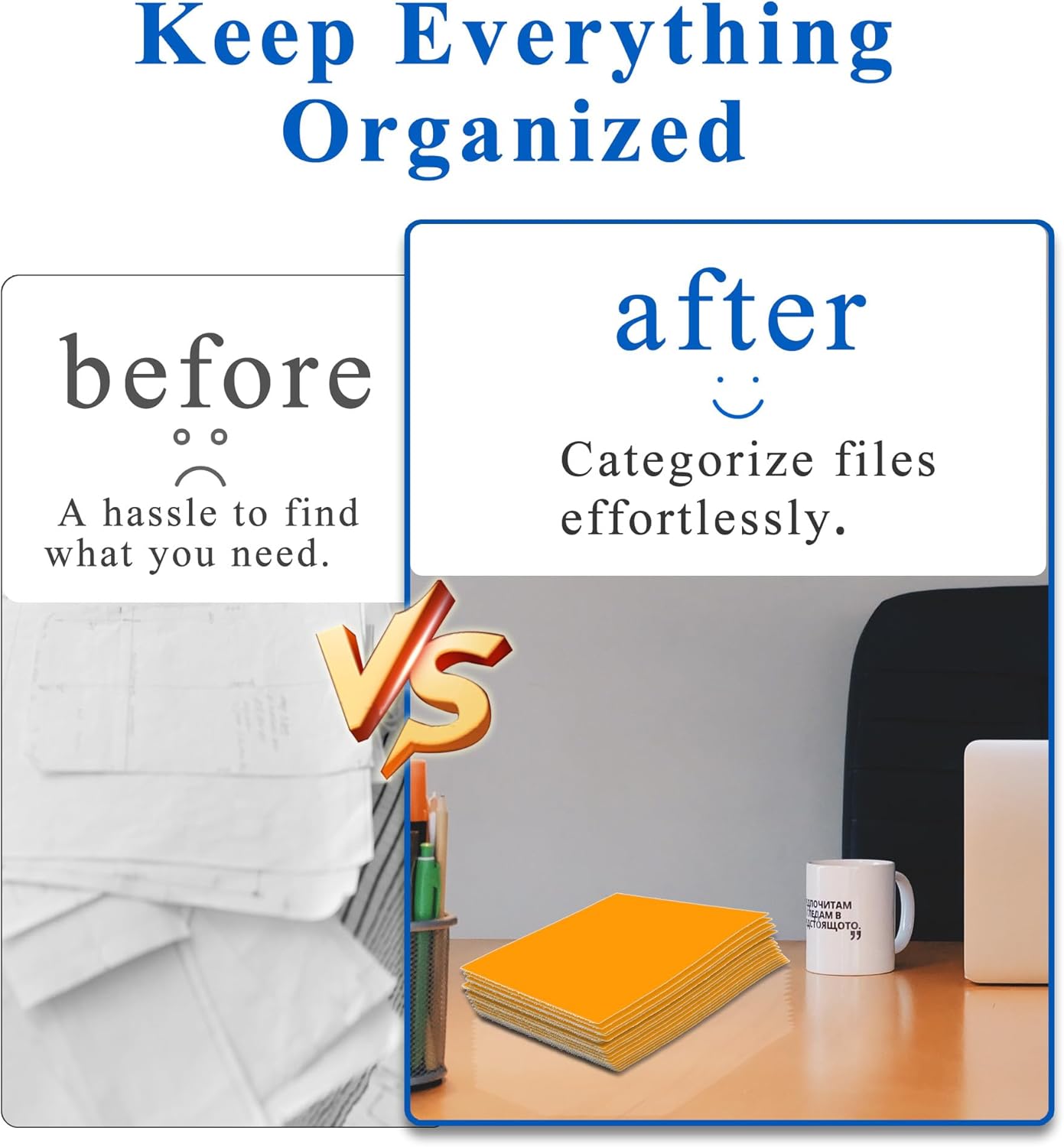 - Package Includes:50 packs orange file folders with 2 pockets and business card slot,100 plus Sheet Capacity,enough use for you,perfect for school,paperwork,office,business.