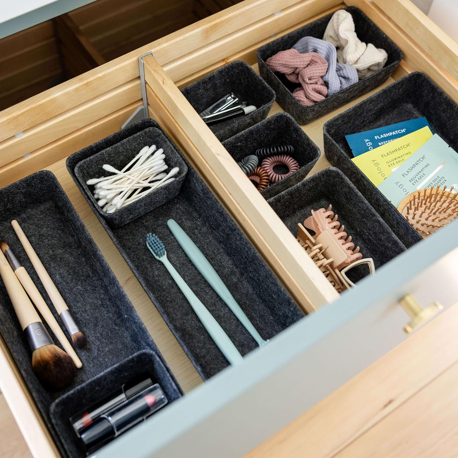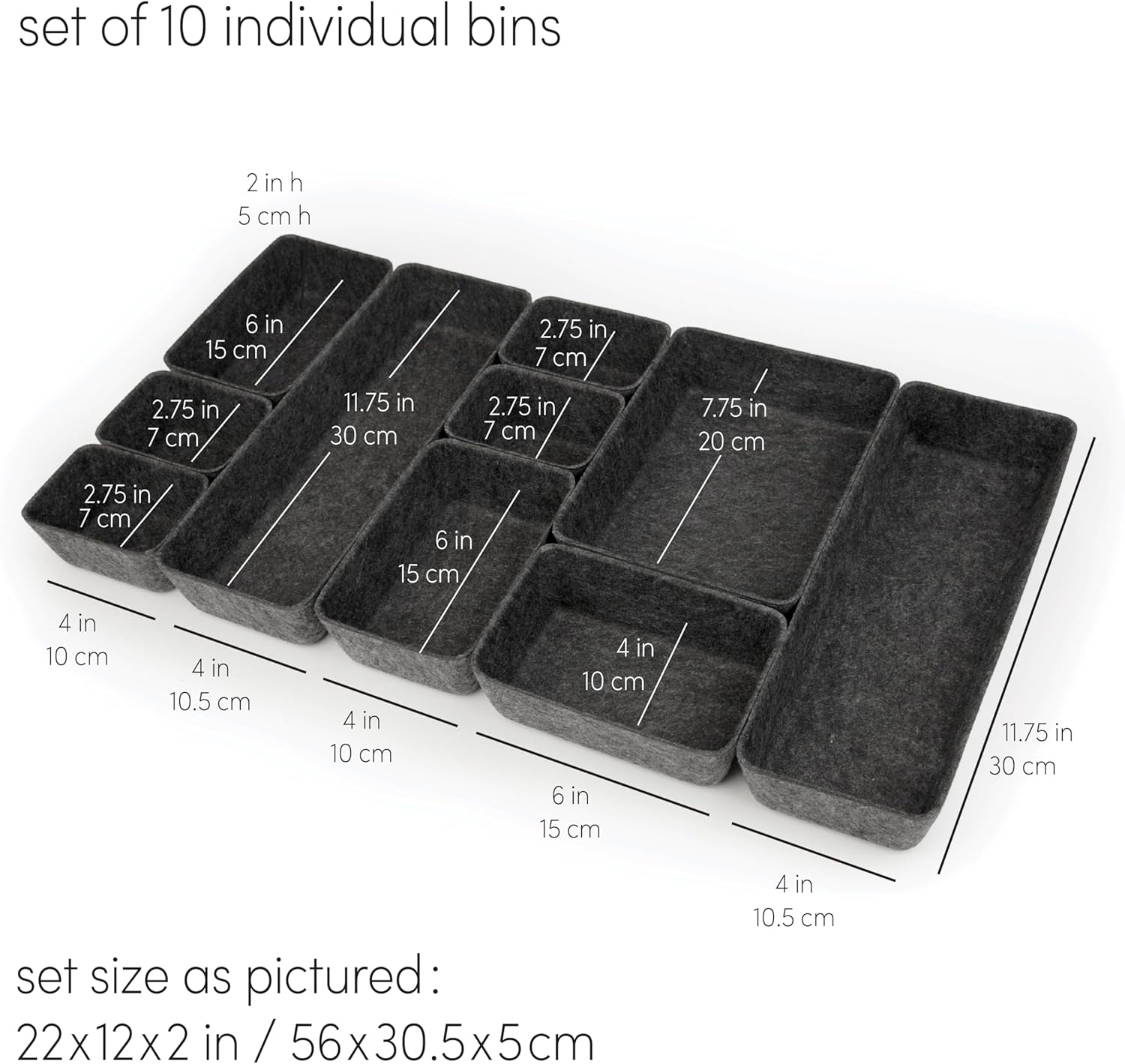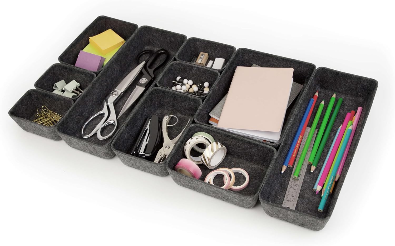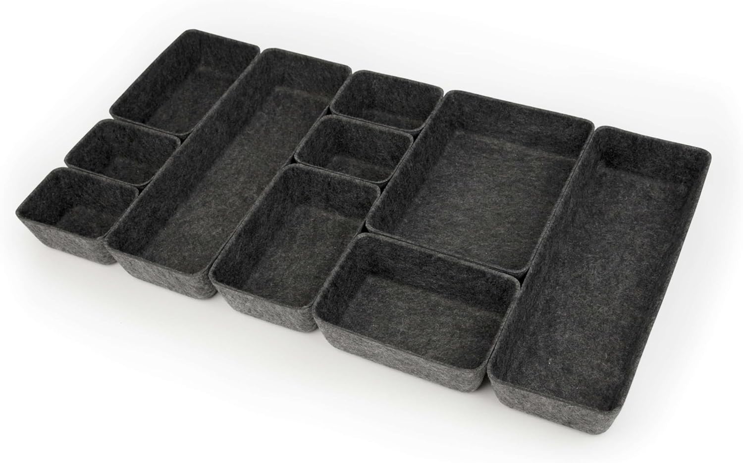 Three by Three Seattle Felt·Like·It! Felt Bins for Office, Crafts, Classroom, Living Room, Bedroom: Charcoal, Set of 10