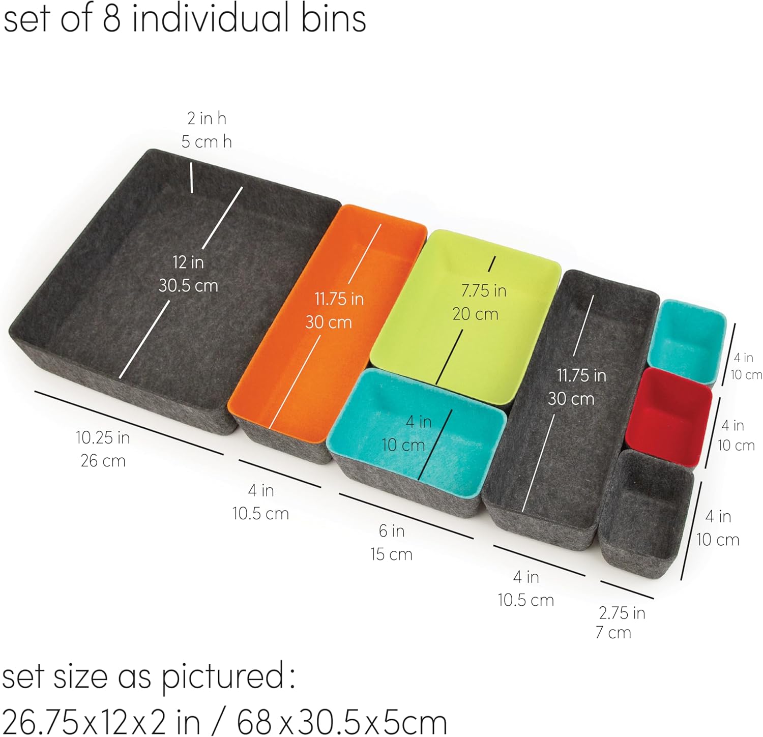 Three by Three Seattle Felt·Like·It! Felt Bins for Office, Crafts, Classroom, Living Room, Bedroom: Multicolor, Set of 8