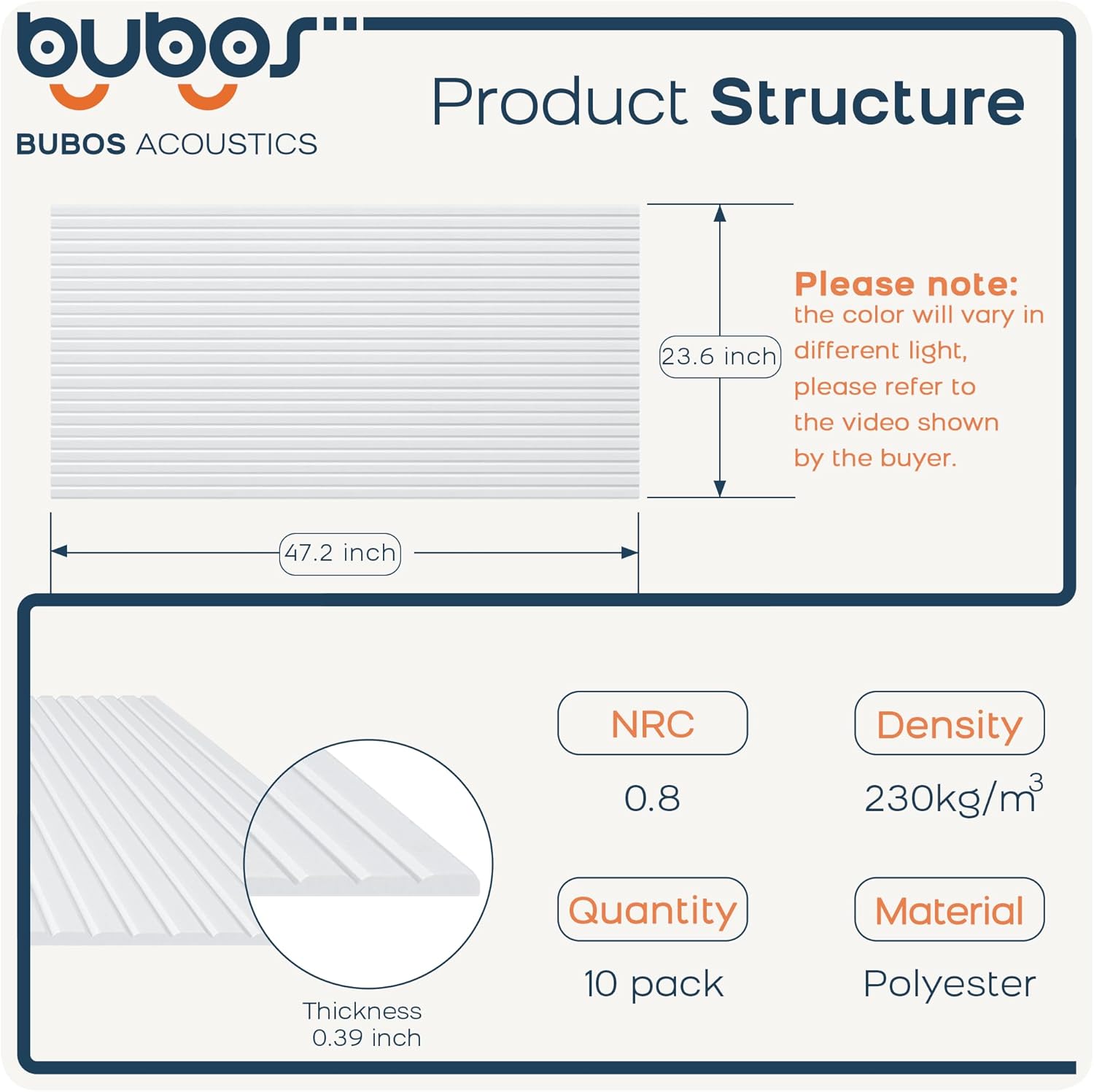 BUBOS 10 Pack Large Acoustic Panels,47.2" X 23.6" X 0.4" Acoustical Wall Panel,Self-Adhesive Sound Proof Foam Panels, Decorative Soundproof Wall Panels for Home Studio Office (White)