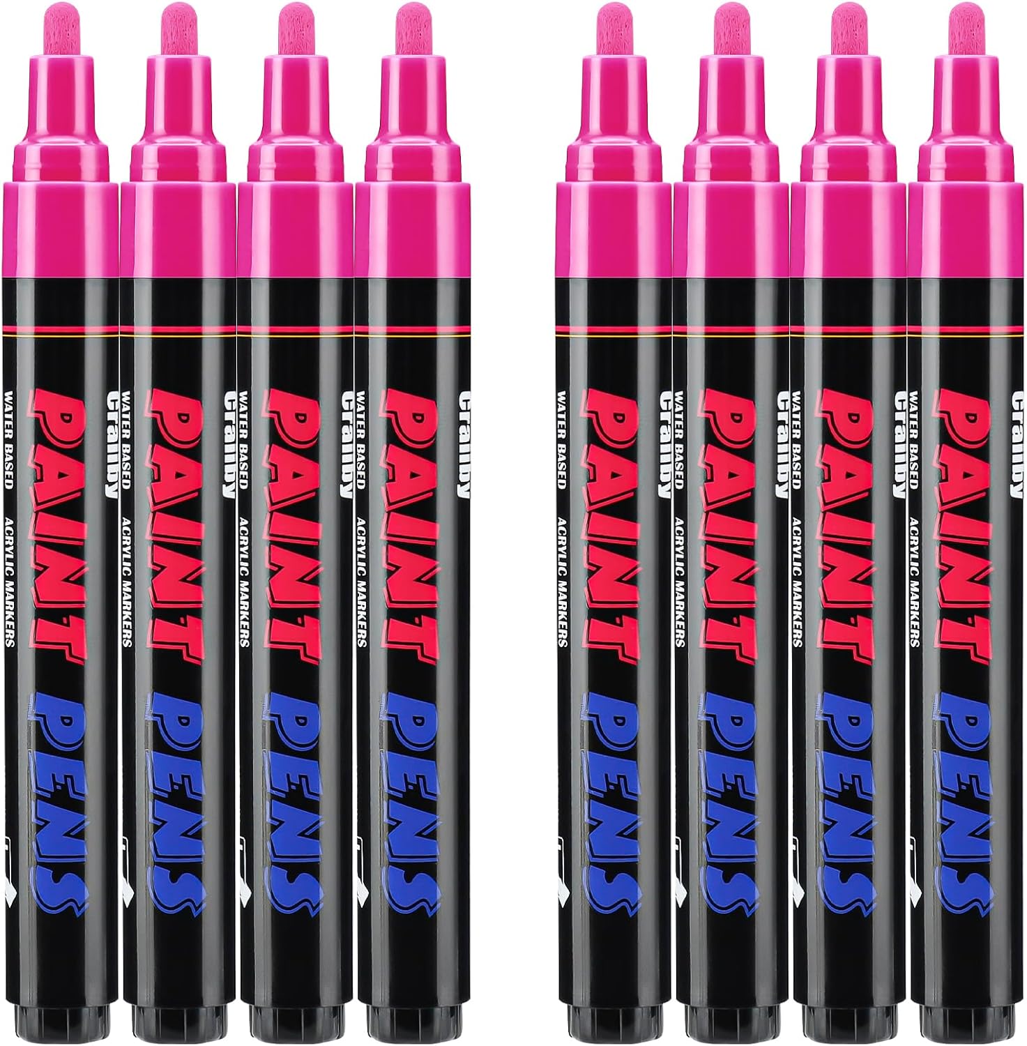 Pink Paint Pens Paint Markers - 8 Pack Permanent Quick Dry Waterproof Marker Pens for Rocks Wood Fabric Plastic Canvas Glass Mugs Metal Tire Stone
