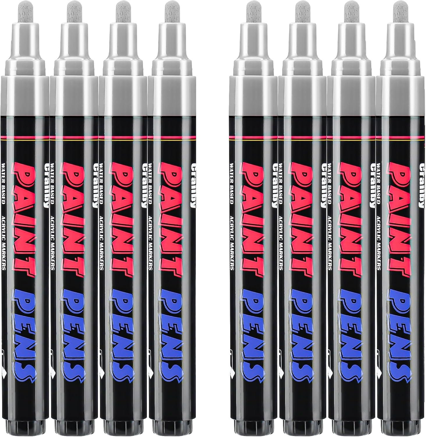 Silver Paint Pens Paint Markers - 8 Pack Permanent Quick Dry Waterproof Marker Pens for Rocks Wood Fabric Plastic Canvas Glass Mugs Metal Tire Stone