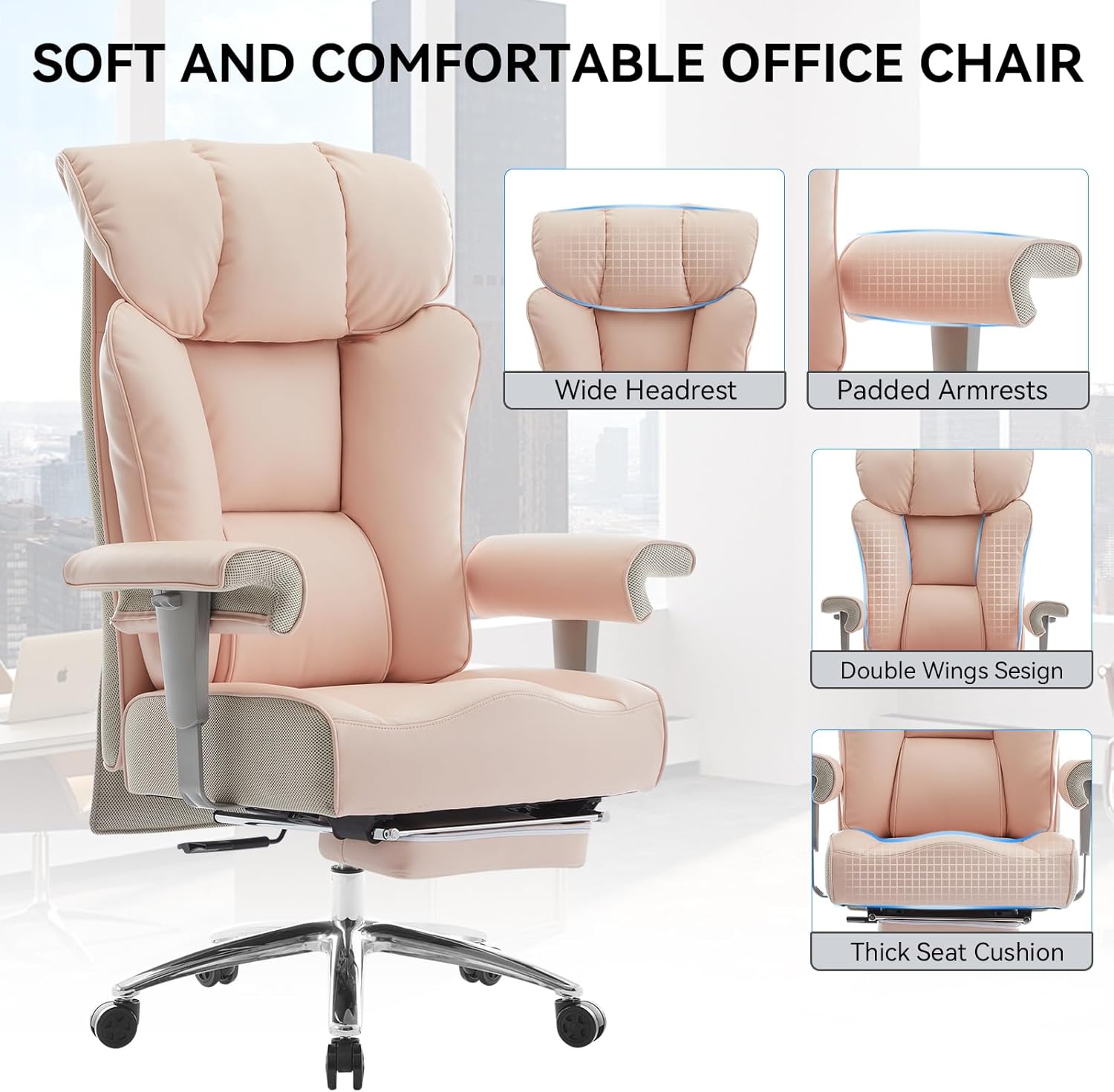 - LUXURIOUS AND UNIQUE OFFICE CHAIR The pink office chair combines elegant design with a unique look, adding a stylish and vibrant touch to your office or home. The tall and tall office chair features a high-back design paired with a thick, saddle seat cushion. make it more than just an comfy office chair—it’s a statement piece that elevates your space, showcasing Youth and Confidence