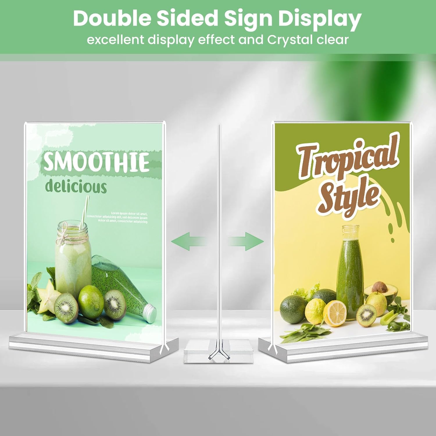 - 【Double Sided Sign Stand】This 21 Pack acrylic sign holder 4x6 is designed with a vertical double sided stand. Compared to the backward-tilted stand, the transparent menu holder adopts a vertical double-sided design, and both sides can display and protect pictures or posters, menus, etc., and are clearly visible.