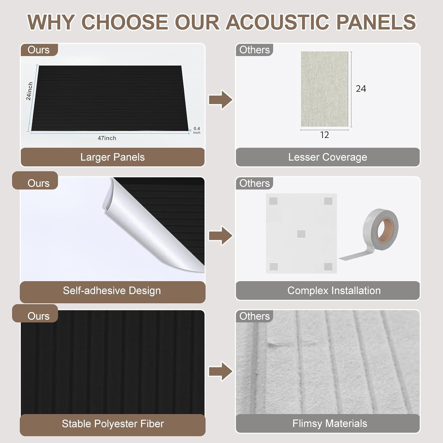 10Pack Large Acoustic Panels, 48x24x0.38 inch Sound Proof Panels for Walls, Self-Adhesive Sound Dampening Wall Panels, Noise Absorbing Decorative Wall Panels, Wall Noise Blocker for Home (Black)