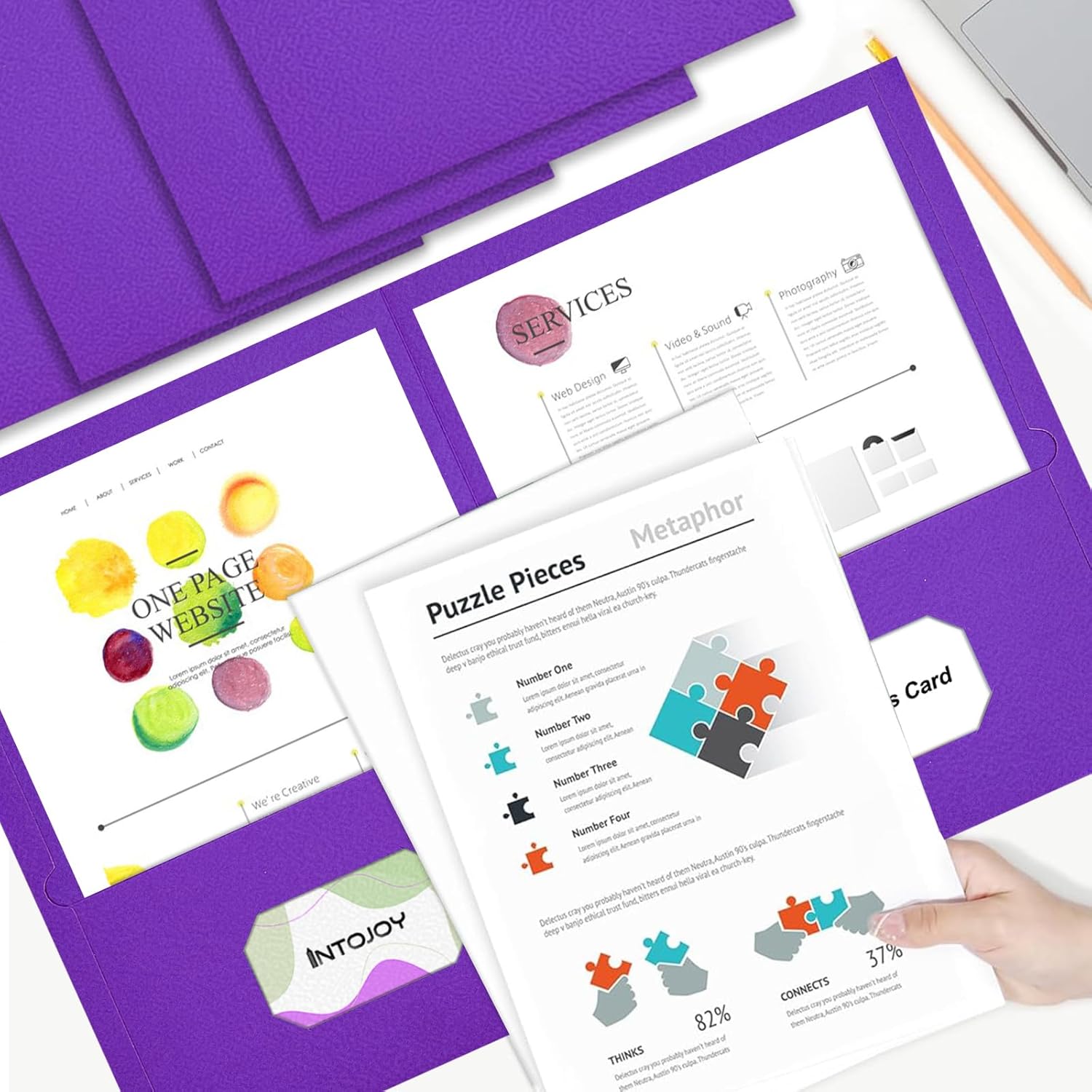 Folders with Pockets,IntoJoy 50 Pack 2 Pocket Folders Fit Letter Size Paper File Folders for School Office Business Home Filing Resume Portfolio (Purple)