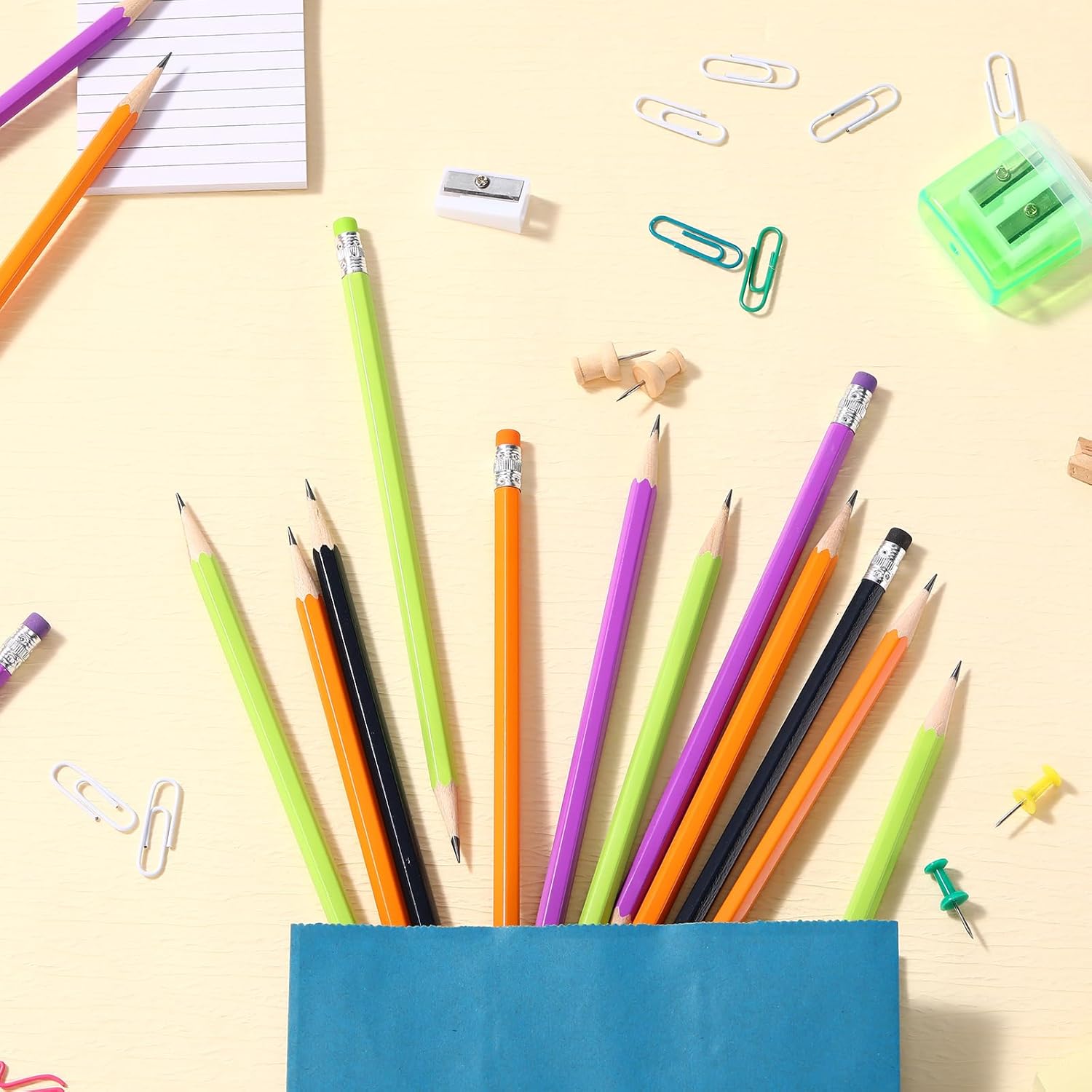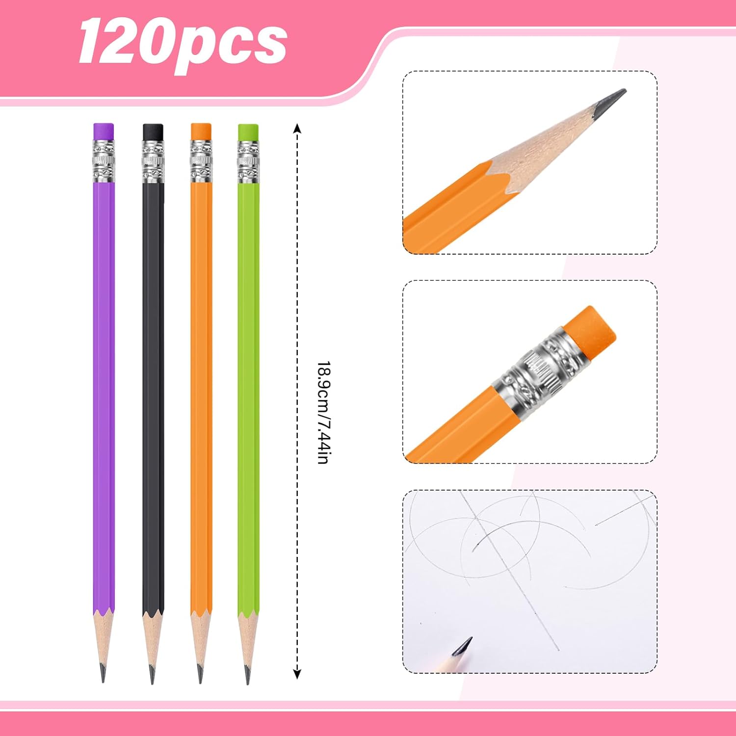 - Sufficient Quality: you will receive 120 pieces of pencils with eraser, with purple orange green black colors pen barrel and eraser, and the eraser is wrapped with sliver metal, enough for daily study and drawing; You can also share them with classmates and friends