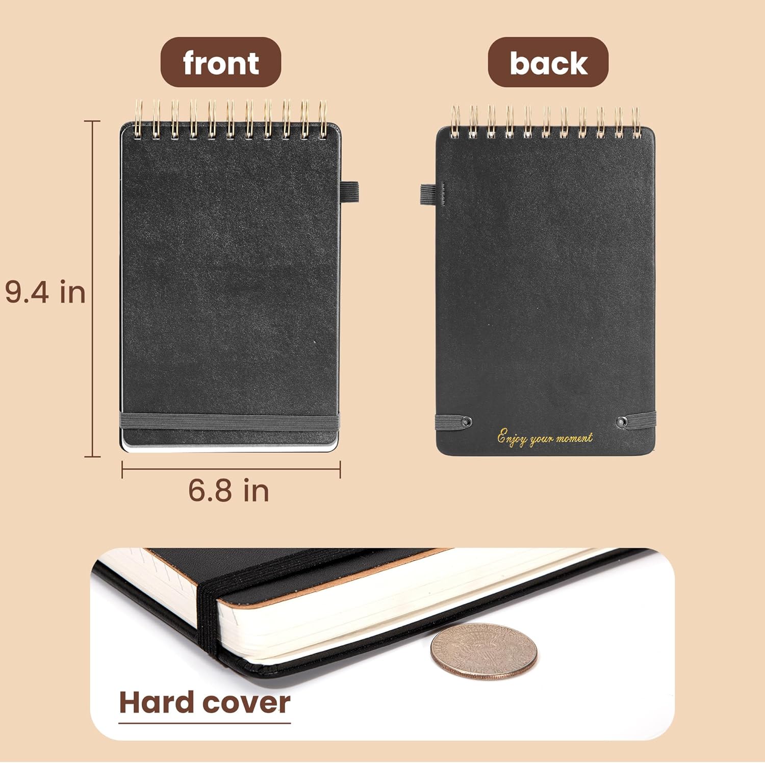 - Leather Top Spiral Notebook -- The cover of yoment's steno pads is made of leather material, which perfectly protects the inner pages and is water and dirt resistant. Soft front cover not only gives the top bound notebook durability but also allows for smooth page turning.