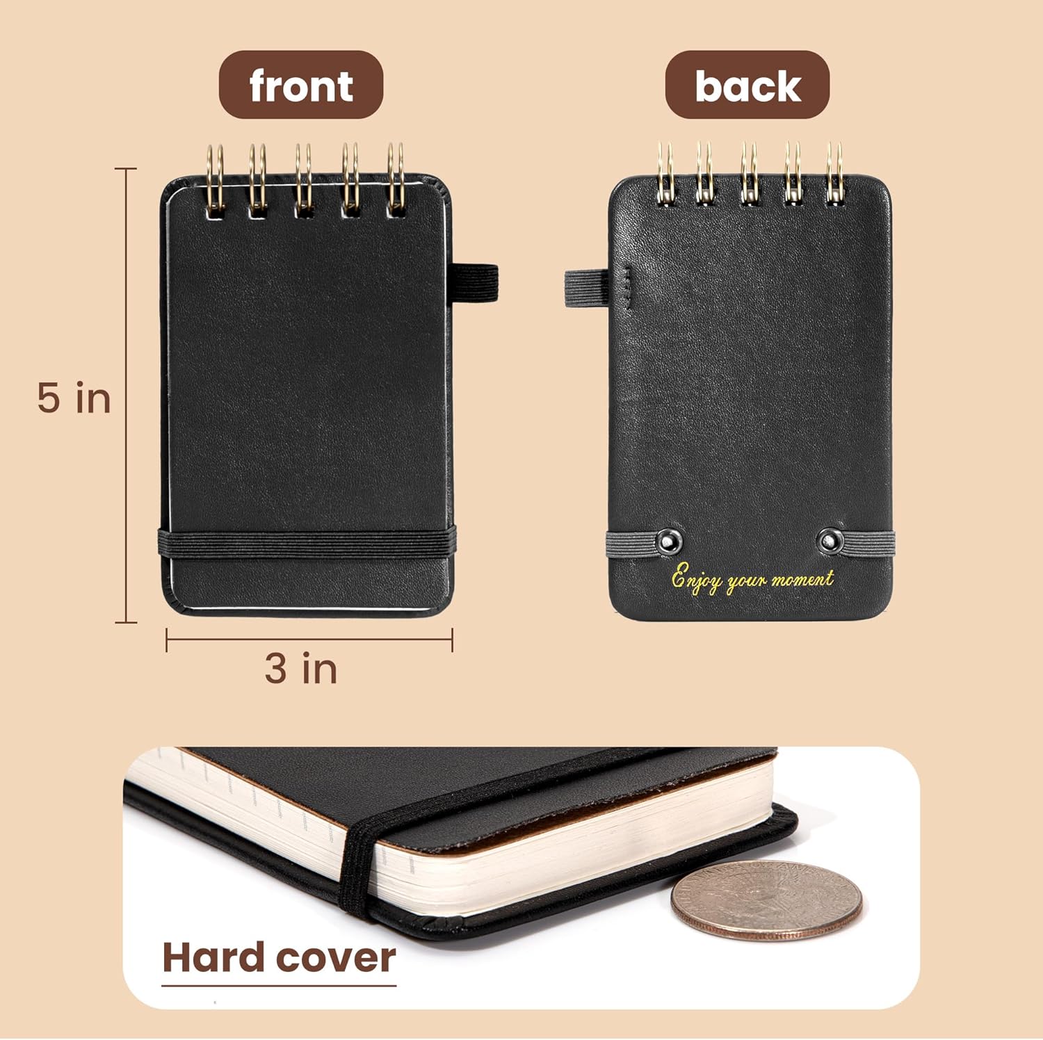 - Leather Top Spiral Notebook -- The cover of yoment's pocket notebook is made of leather material, which perfectly protects the inner pages and is water and dirt resistant. Soft front cover not only gives the small notepads durability but also allows for smooth page turning.